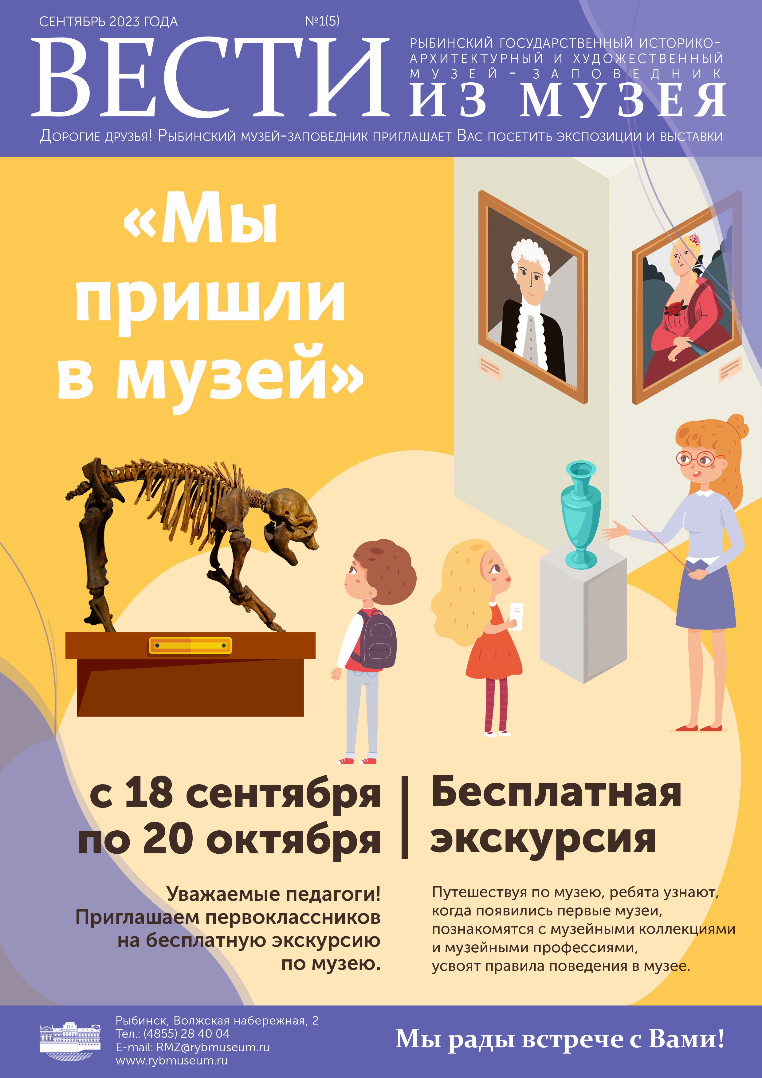 Уважаемые педагоги! С 18 сентября по 20 октября Рыбинский музей-заповедник приглашает первоклассников на бесплатную экскурсию по музею «Мы пришли в музей».