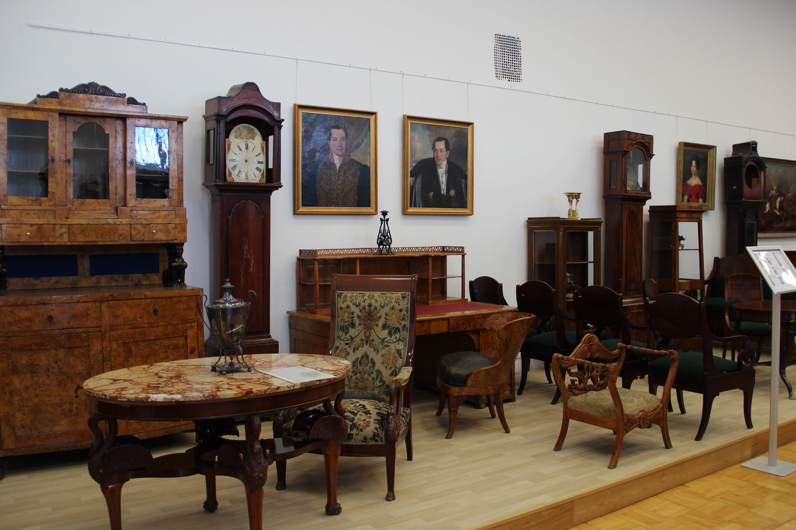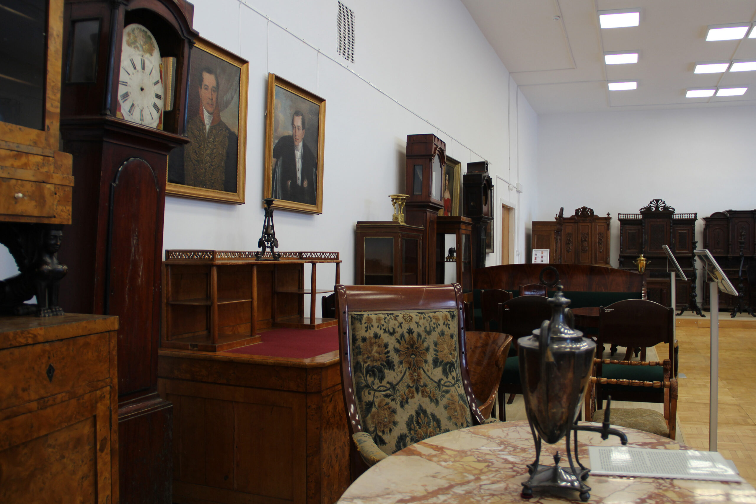 В открытом хранилище мебели наш посетитель попутешествует во времени и получит разнообразную эксклюзивную информацию о коллекции в целом и отдельных, наиболее интересных и редких предметах. Он сможет познакомиться с интерьерами комнат в дворянских усадьбах и городских купеческих особняках XIX – начала XX вв., узнать об особенностях различных стилей прикладного искусства и техниках декорирования мебели в тот или иной исторический период, получить сведения о бывших владельцах мебельных памятников из нашей коллекции и многое другое.