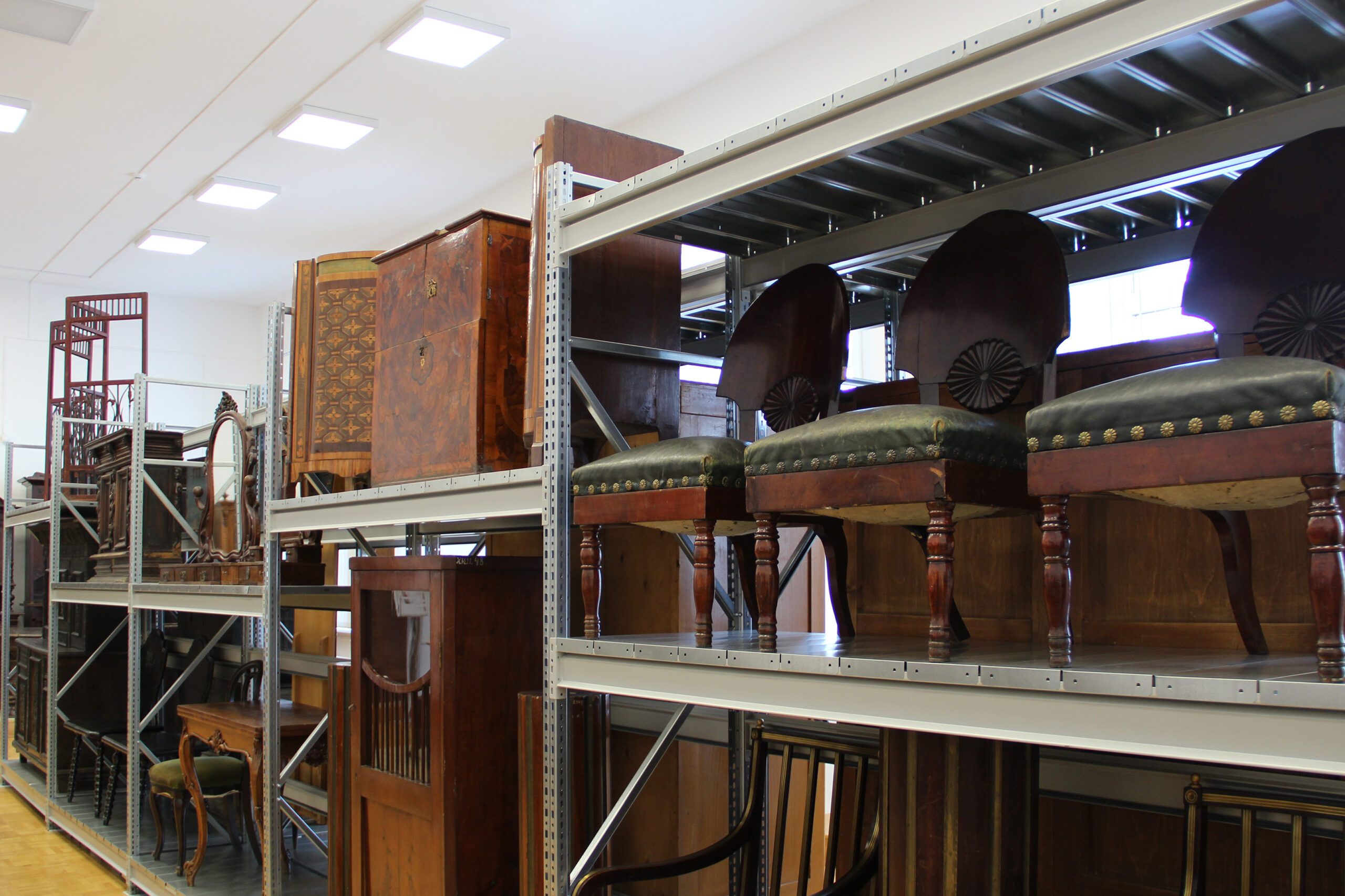 В новом хранилище будет показано более 50 предметов, в основном, отечественного изготовления. Это крупная корпусная мебель (буфеты, гардеробы, комоды), мебель для сидения (диваны, кресла и стулья), столы (обеденные, письменные, ломберные), напольные и настенные часы, крестьянская мебель (сундуки, скамьи, поставцы, горки). Мебельные памятники выполнены в различных стилях, таких как ренессанс и барокко, классицизм и ампир, историзм и модерн.