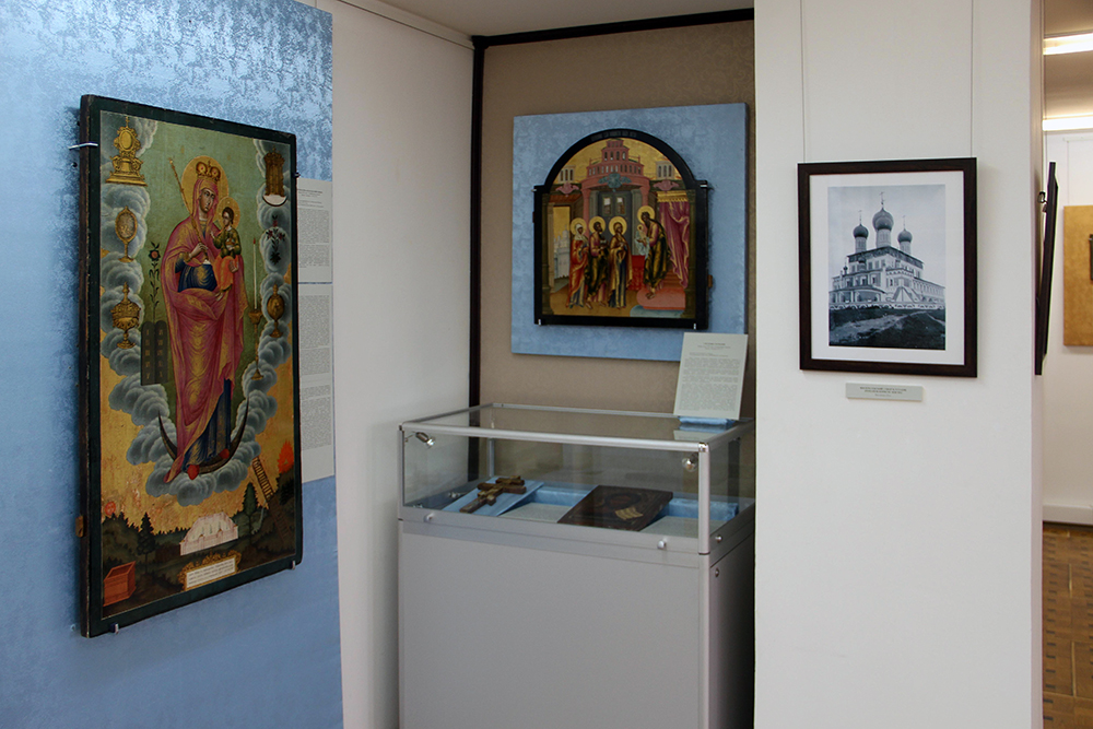 Экспозиция построена по разделам, отражающим источники поступлений памятников: «храмы Рыбинска и окрестностей», «усадебные собрания местных дворян», «монастыри земли Рыбинской». Это пласт нашей местной духовной культуры с ее святынями и святыми.