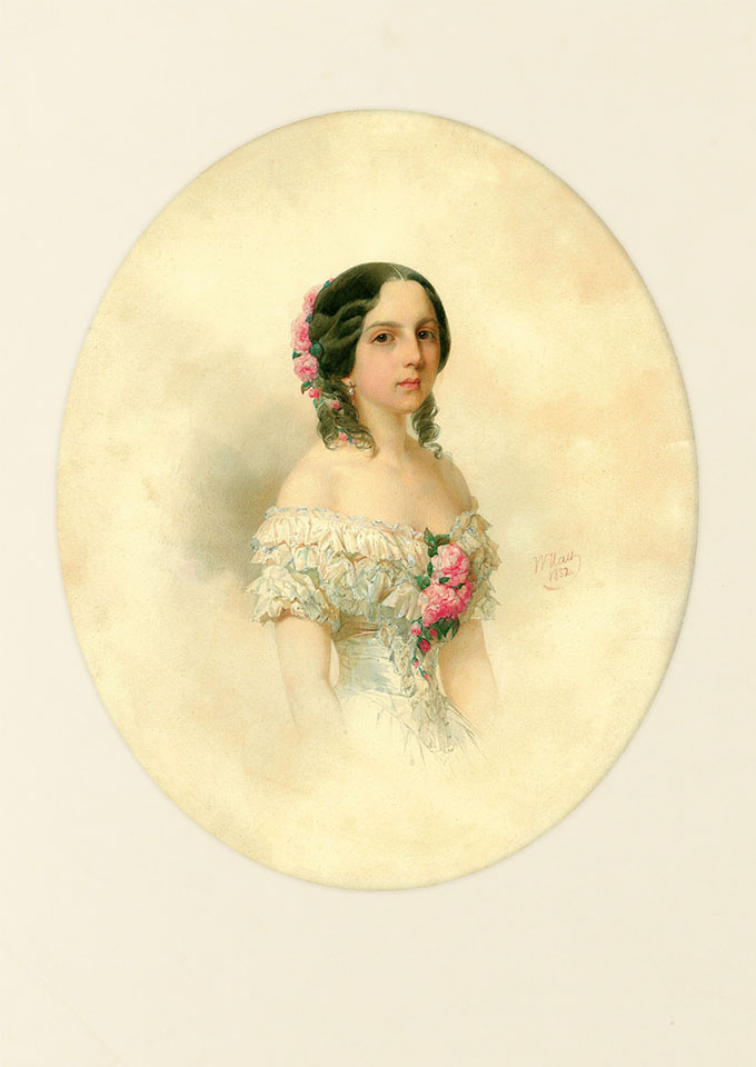 Гау В.И. Портрет Любови Александровны Мусиной-Пушкиной (урожденная Кушелева-Безбородко)? 1852 г. Б., акв.