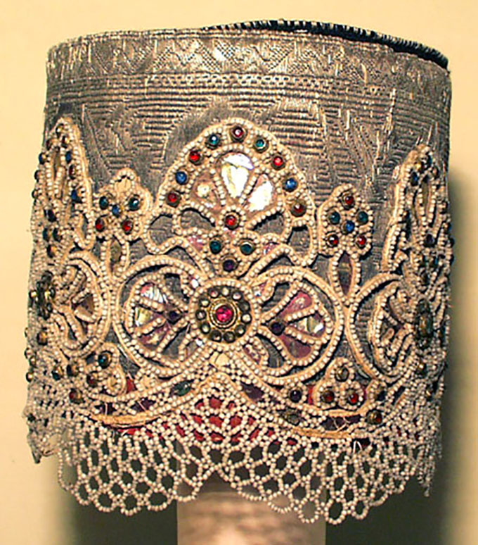 Девичий головной убор. 1800–1850 гг. Россия, Ярославская губ. Набойка, фабричная ткань, бисер.