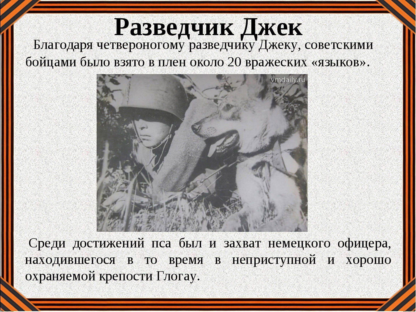 За годы войны более 60 тысяч собак прошли славный боевой путь с нашими бойцами от Москвы до Берлина.