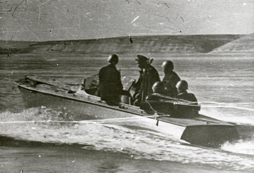 Боевой катер под командованием старшины II статьи Б.Н. Сержантова на разведке в р-не Сталинграда. 1942 г.