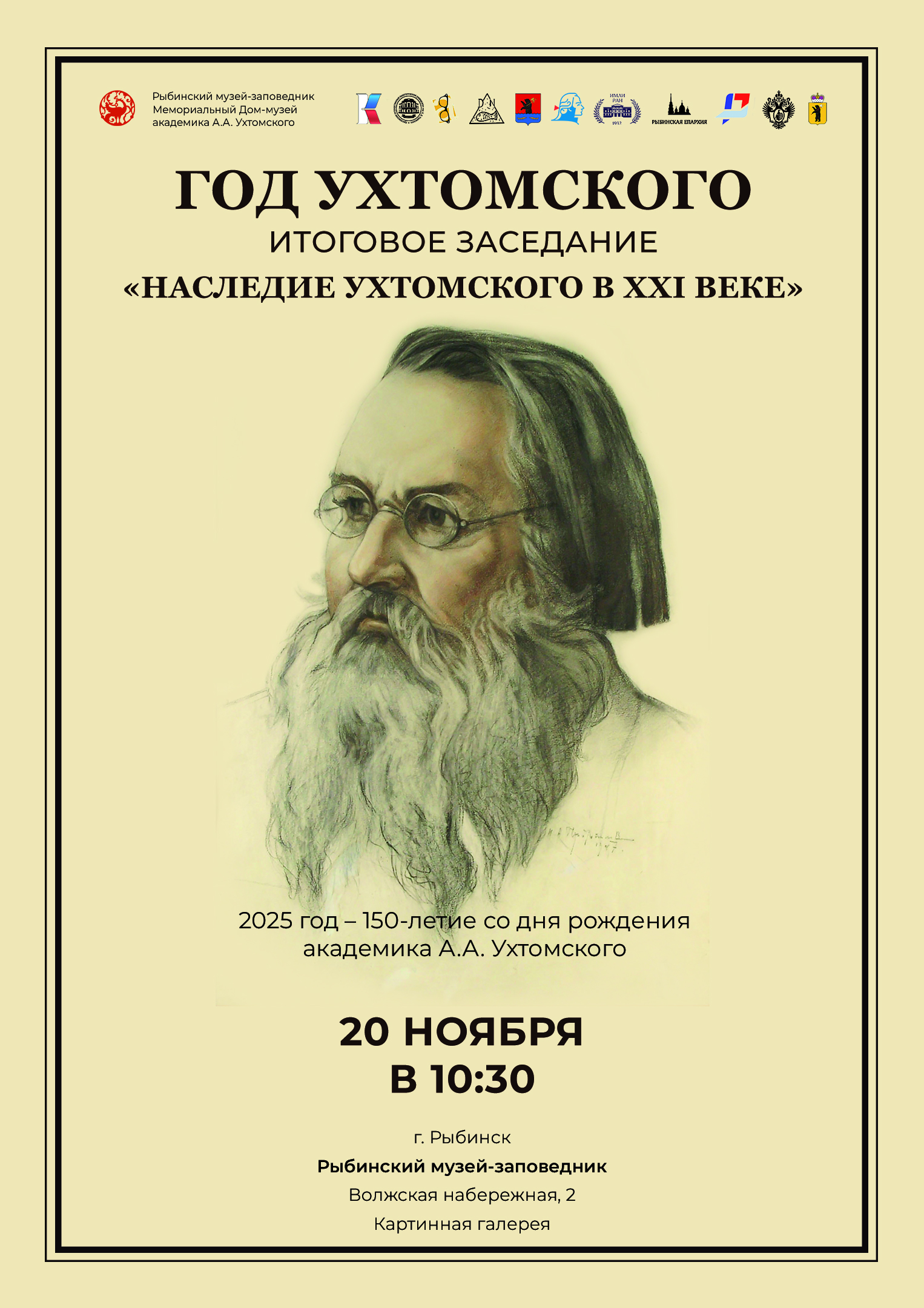20 ноября в 10:30 в Рыбинском музее-заповеднике в Картинной галерее состоится Итоговое заседание «Наследие Ухтомского в XXI веке».