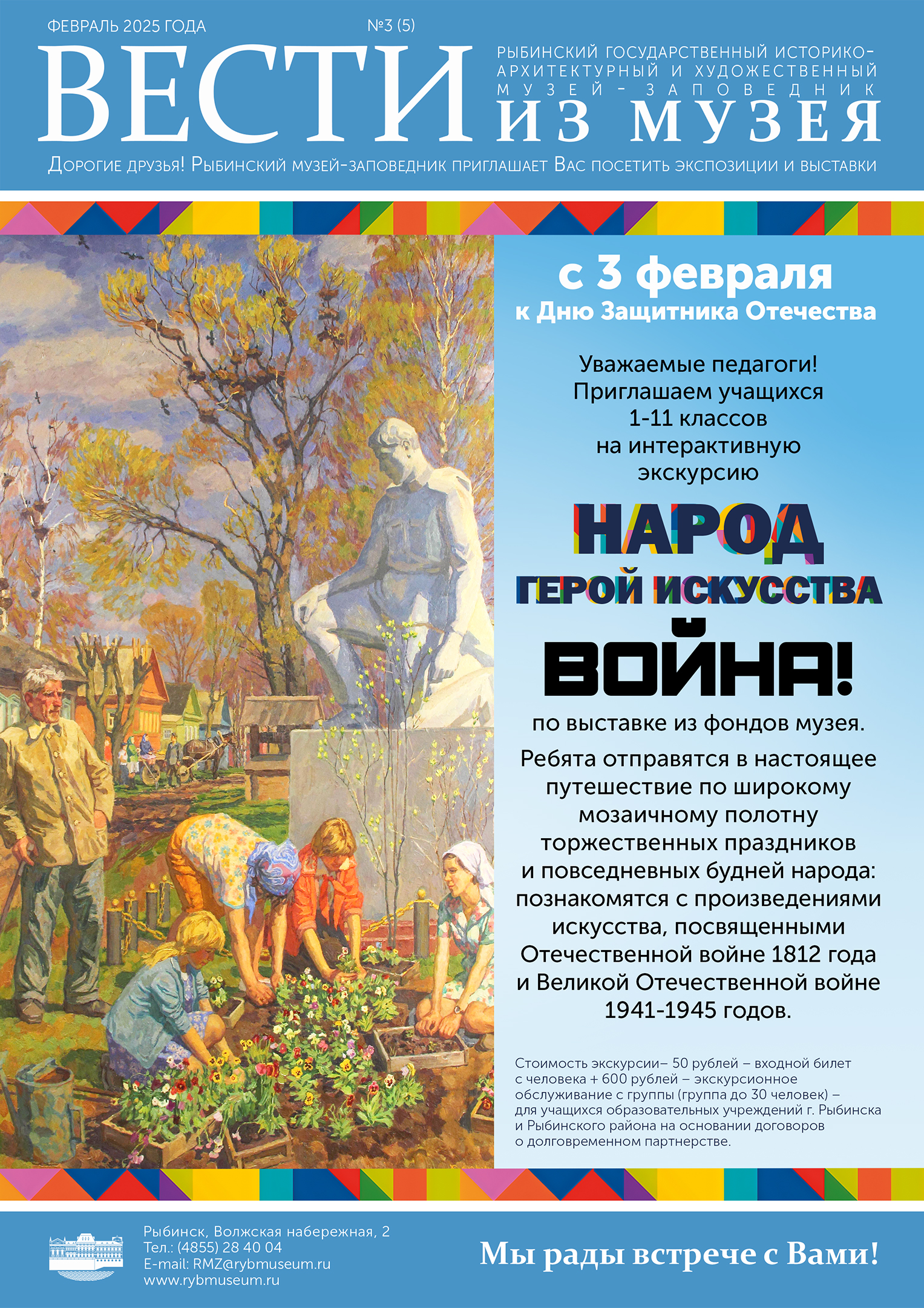 Уважаемые педагоги! С 3 февраля Рыбинский музей-заповедник приглашает организованные группы учащихся 1-11 классов на интерактивную экскурсию «Народ – герой искусства. Война» по выставке из фондов музея.