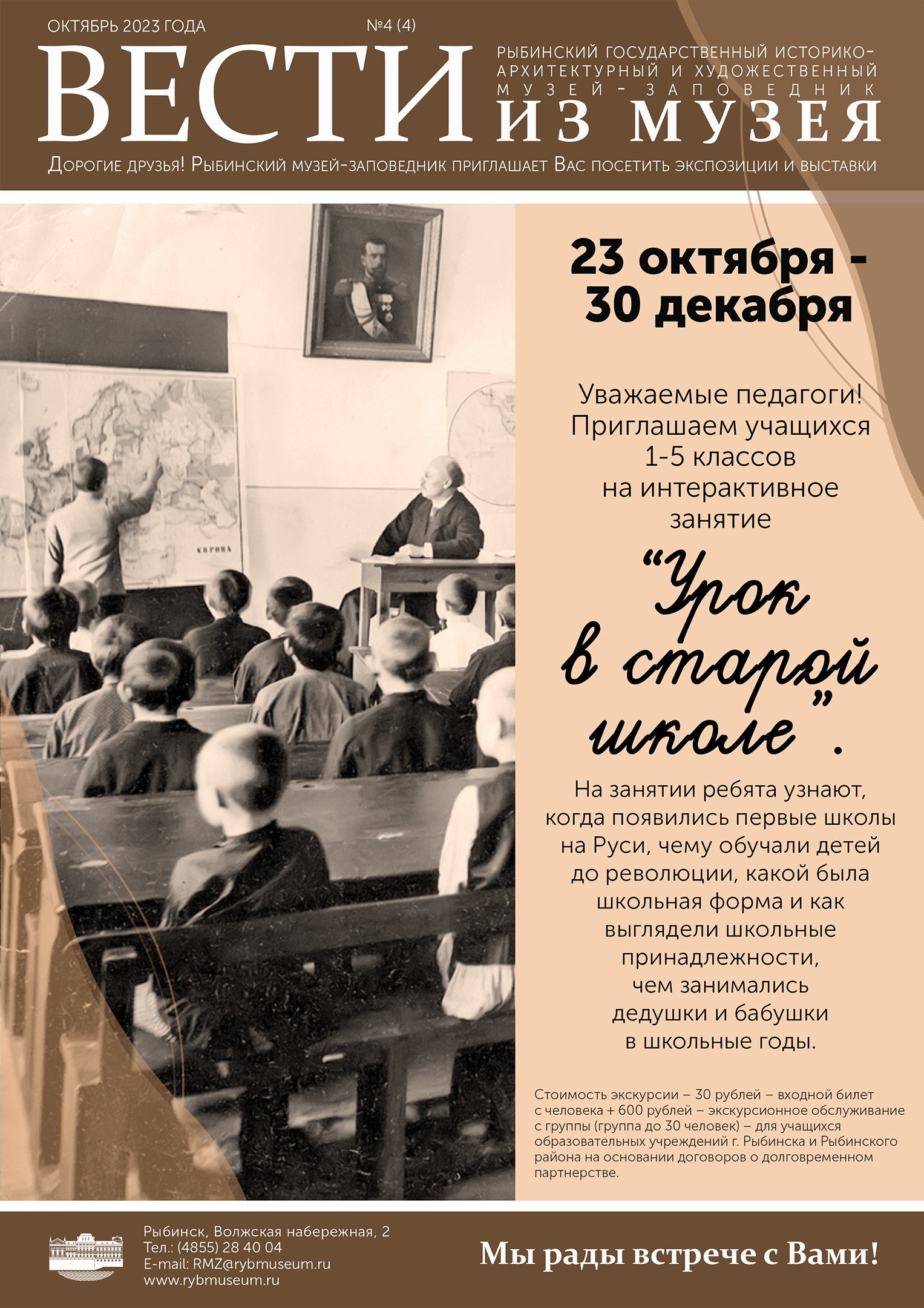 Уважаемые педагоги! С 23 октября по 30 декабря Рыбинский музей-заповедник предлагает для учащихся 1-5 классов интерактивное занятие «Урок в старой школе».