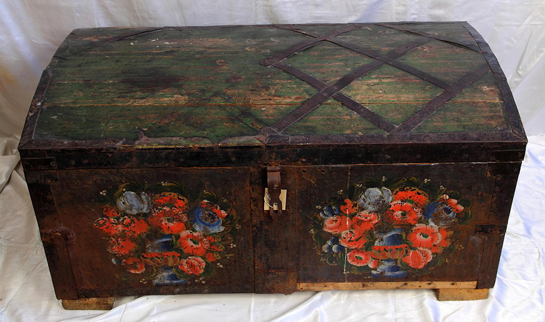 Сундук. 1890-1920 гг. Россия.  Дерево, металл, краска масляная; росписьСундук. 1890-1920 гг. Россия.  Дерево, металл, краска масляная; роспись
