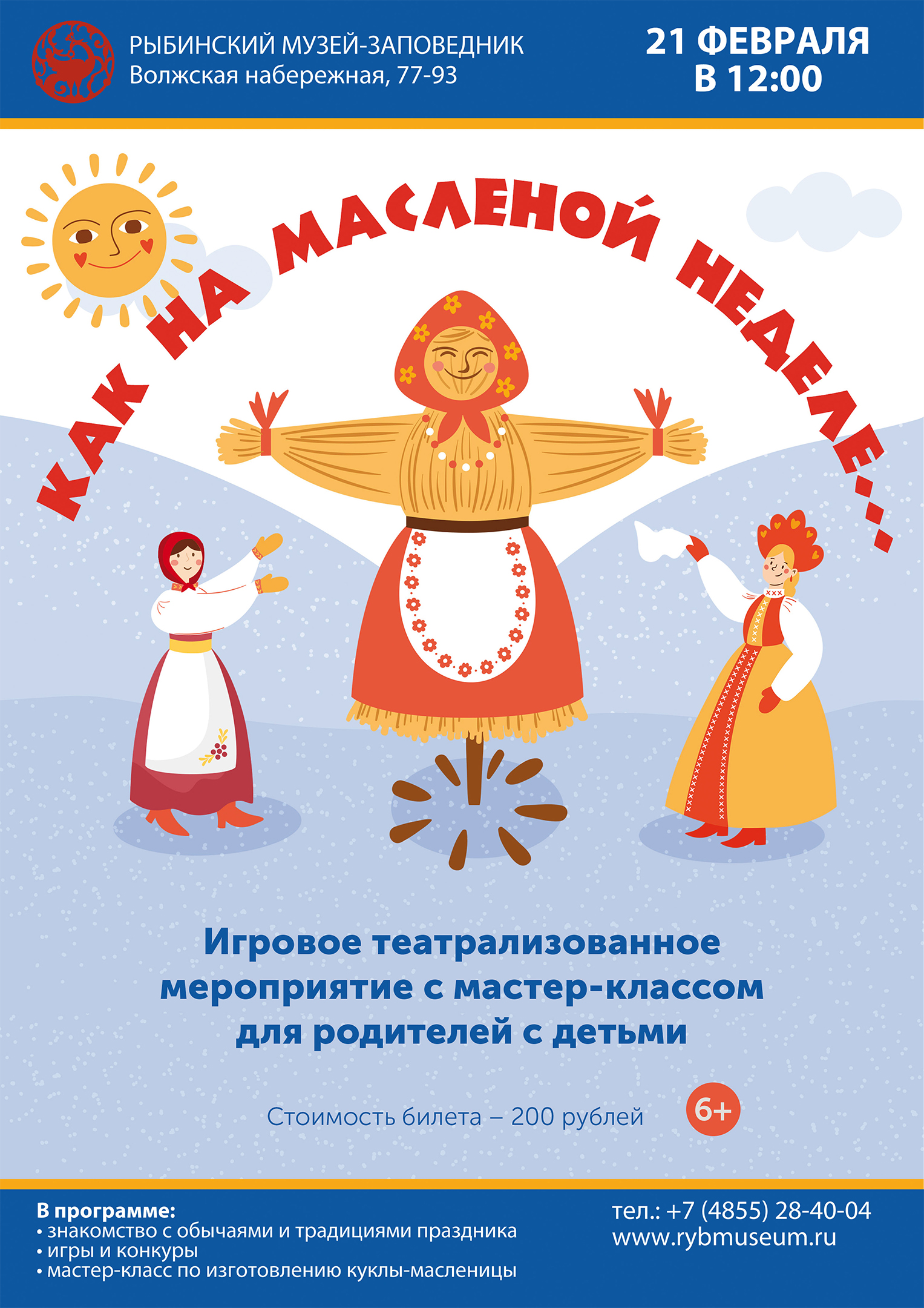Рыбинский музей-заповедник 21 февраля в 12:00 приглашает на игровое театрализованное мероприятие с мастер-классом для родителей с детьми «Как на масленой неделе…»