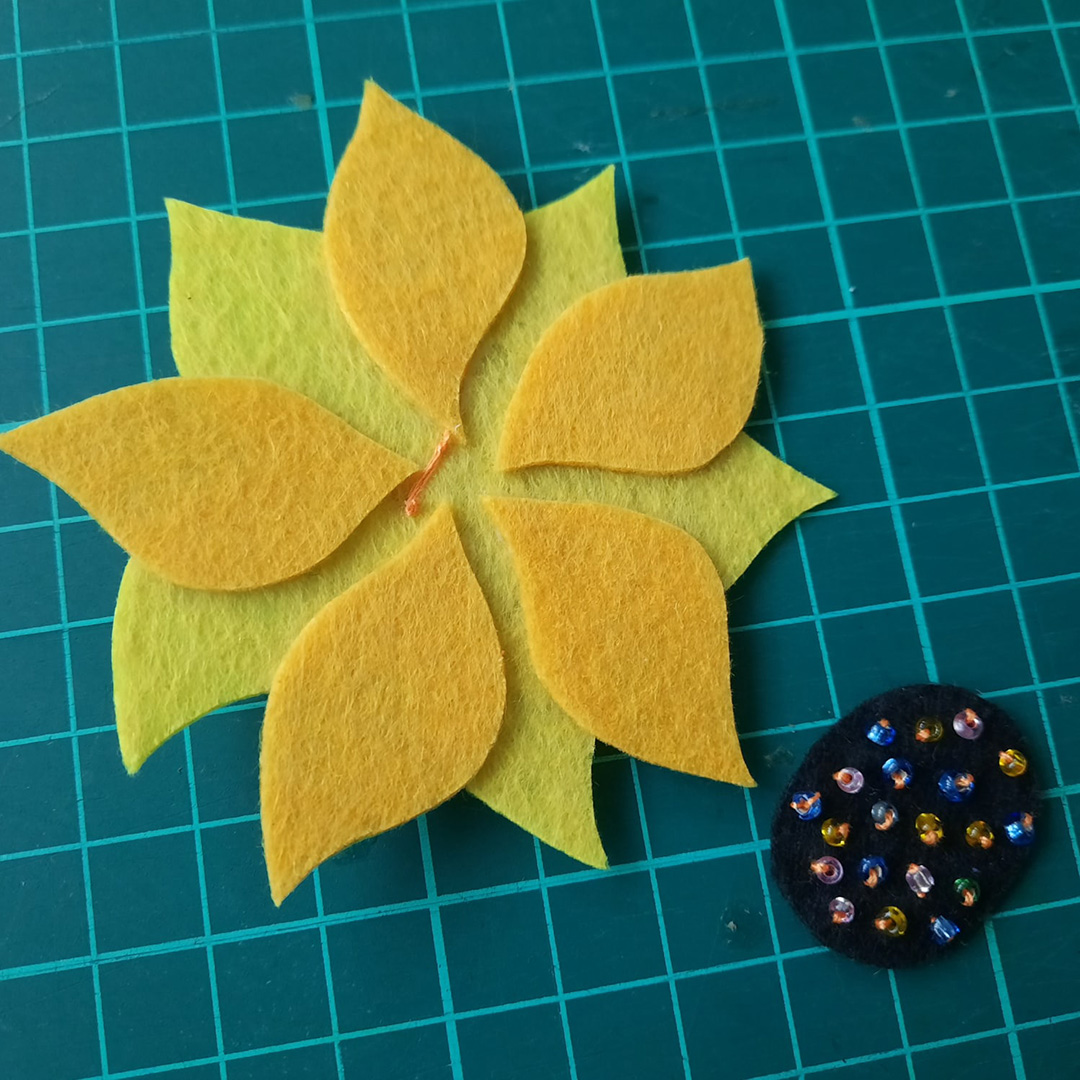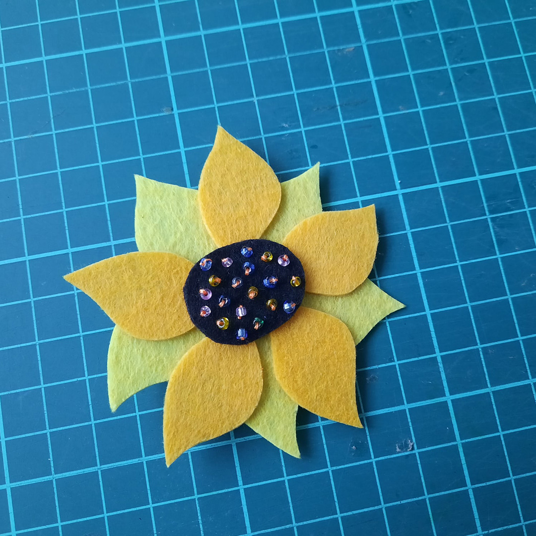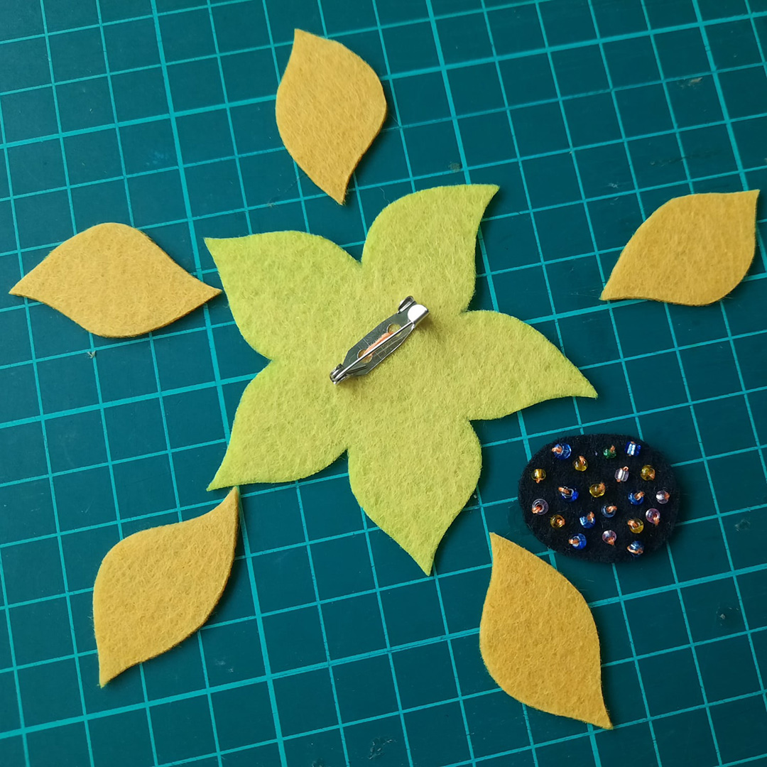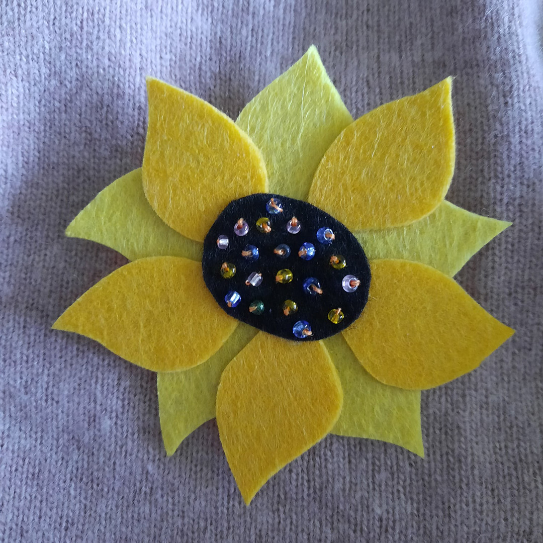 Друзья! Предлагаем изготовить брошь в виде подсолнуха, которая будет радовать вас в ненастные дни и подарит отличное настроение!