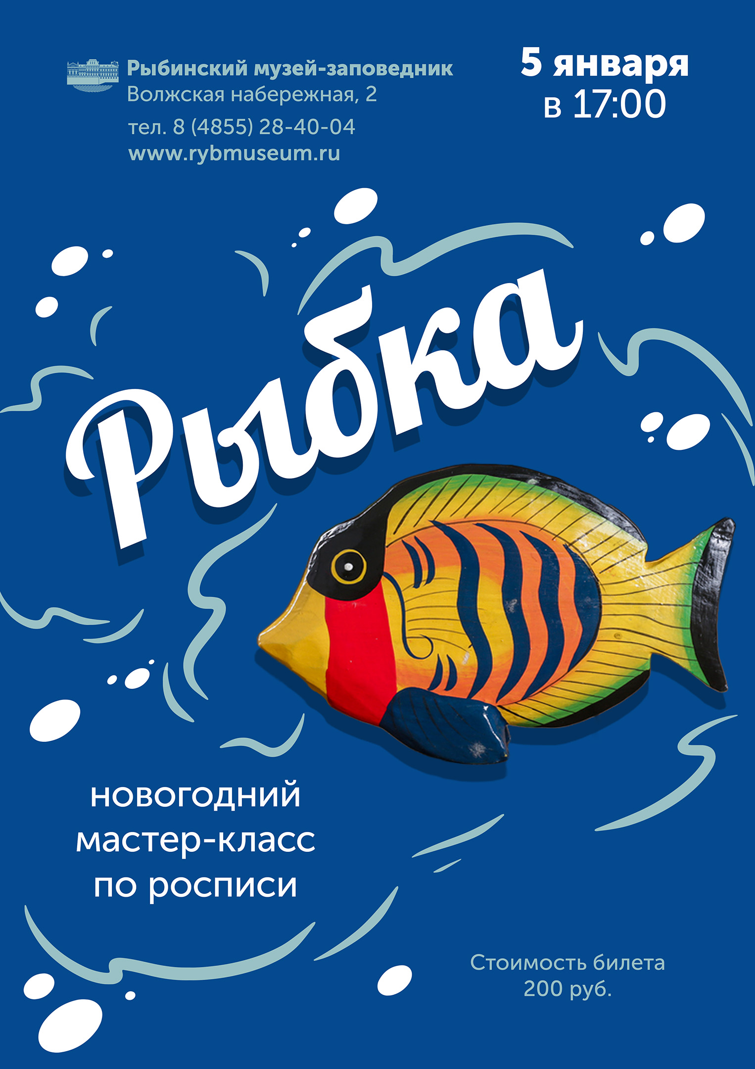 5 января в 17:00 приглашаем на новогодний мастер-класс по росписи «Рыбка». Мастер-класс будет проходить в главном здании музея (Волжская набережная, 2).