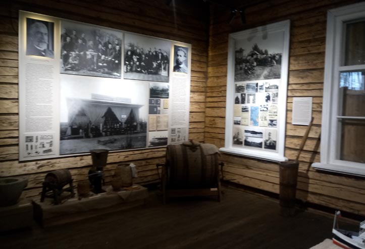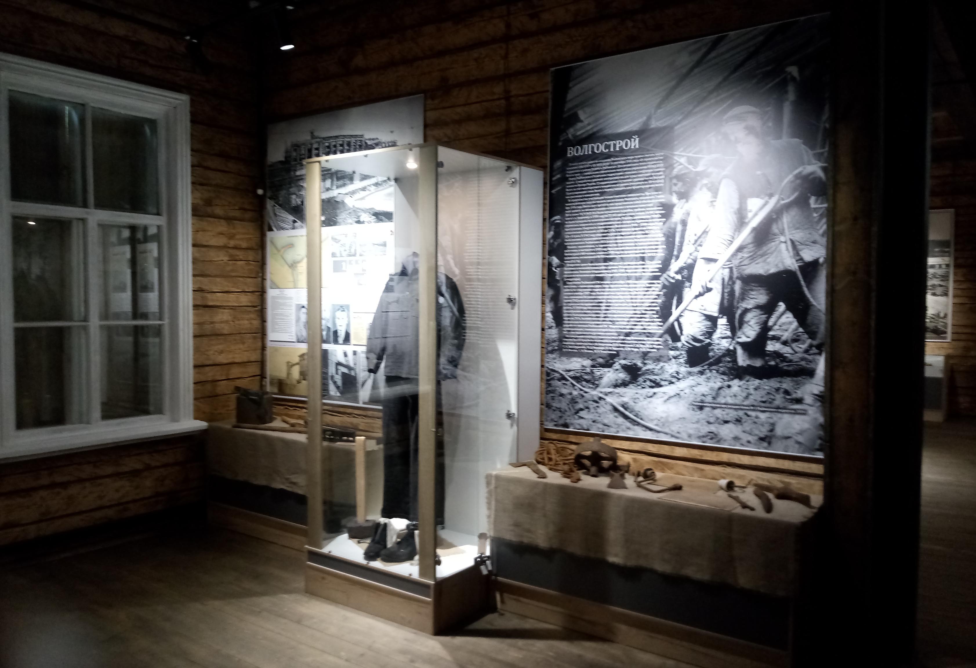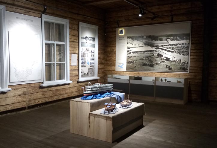 Располагается в деревянном здании бывшего родильного дома, перевезённого из соседнего села Погорелка. В Погорелку же, согласно одной из легенд, это здание было перенесено из Мологского района в конце 1930-х годов, перед затоплением его Рыбинским водохранилищем. Здесь представлено более 300 предметов и материалов, рассказывающих о древних морях и озёрах, которые существовали здесь сотни тысяч лет назад, о затопленных Мологском крае и селе Коприне, о строительстве гидроузла и о современной жизни Рыбинского моря. Среди интересных экспонатов — модели речных судов кабестана и коноводки, которые использовались в этих местах на Волге задолго до создания Рыбинского водохранилища и которые иллюстрируют трудности судоходства в те времена. Также представлен уникальный макет плота мологжанина-переселенца. В музее демонстрируются кадры кинохроник 1930-х годов о строительстве гидроузла, а также документальные фильмы о прошлом и настоящем Рыбинского водохранилища. В музейном киоске представлена разнообразная сувенирная продукция.