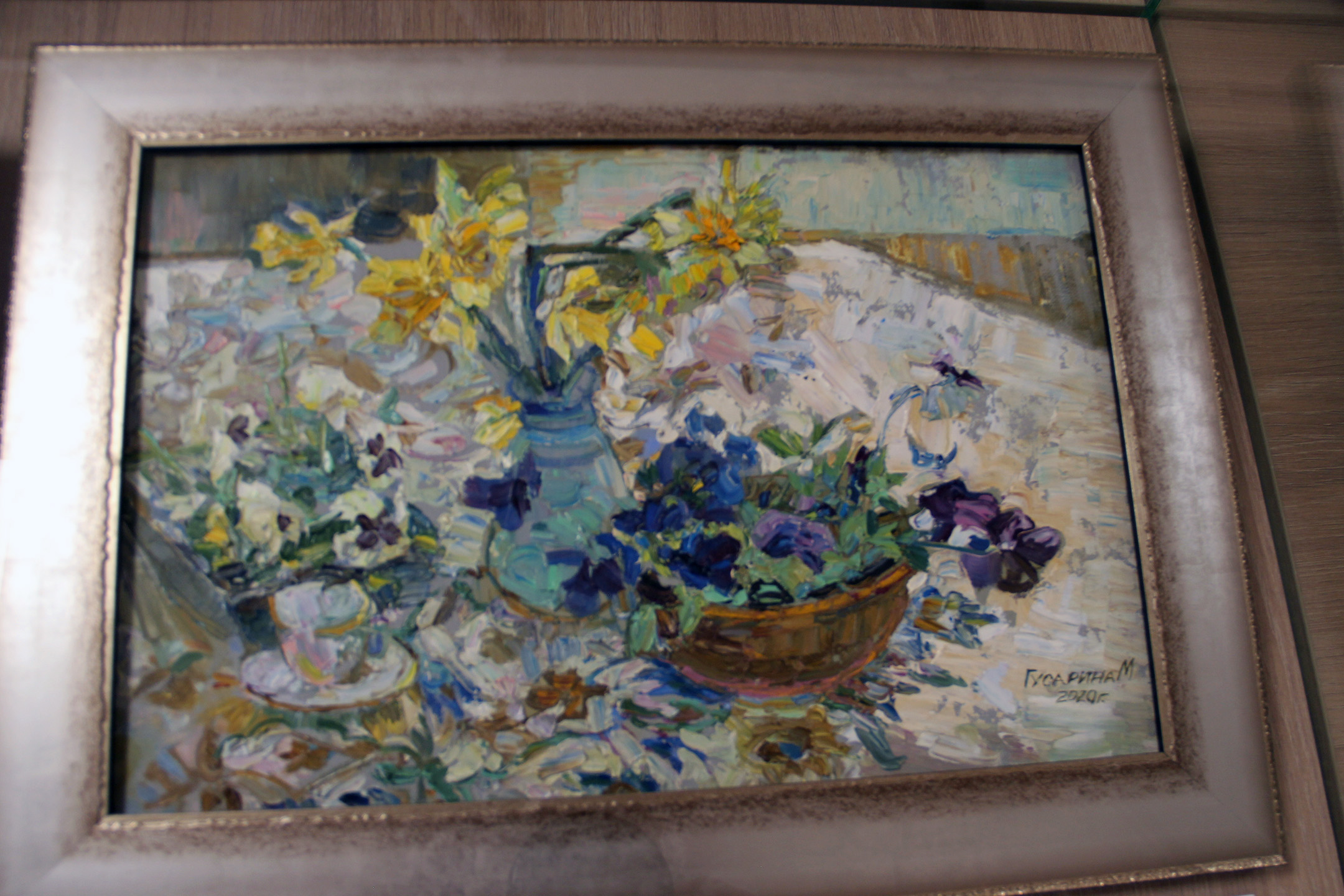 Созерцателен и тих трепетный холодный свет в пленэрных видах Кимжи и села Вятского; глубоко поэтичны северные воды Кенозерья с импрессионизмом цветовых слоев. Совсем иного звучания по-авангардному декоративные крупные натюрморты. В них экспрессивное театральное буйство красок. Солнечная палитра и изобилие цветущих растений и плодов в натюрмортах заставляют вспомнить таких мастеров серебряного века, как А. Головин и И. Грабарь, адресуют к раннему русскому авангарду в лице И. Машкова и П. Кончаловского.