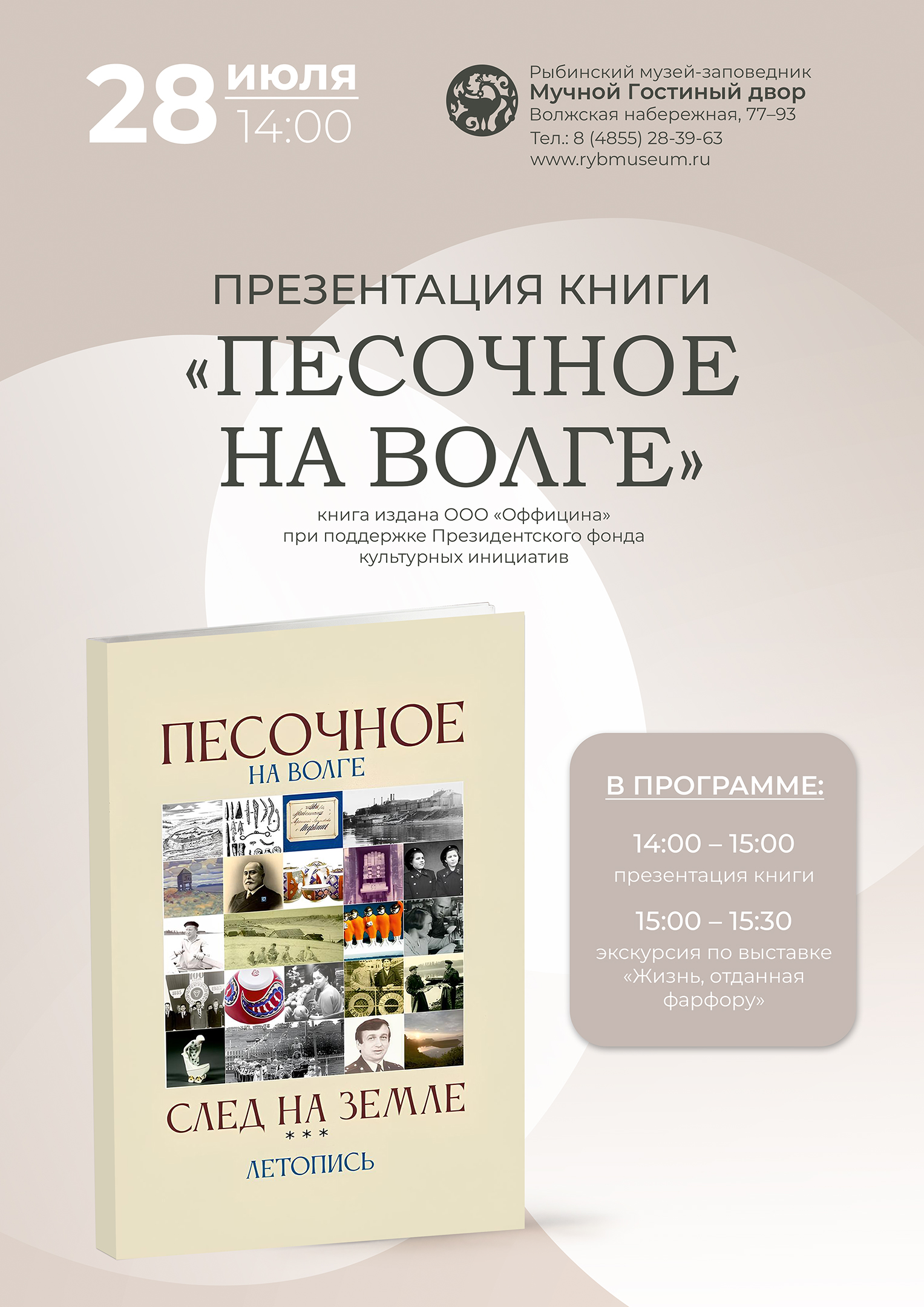 28 июля, в 14:00, в Мучном Гостином дворе состоится презентация книги «Песочное на Волге. След на земле», изданной ООО «Оффицина» при поддержке Президентского фонда культурных инициатив.