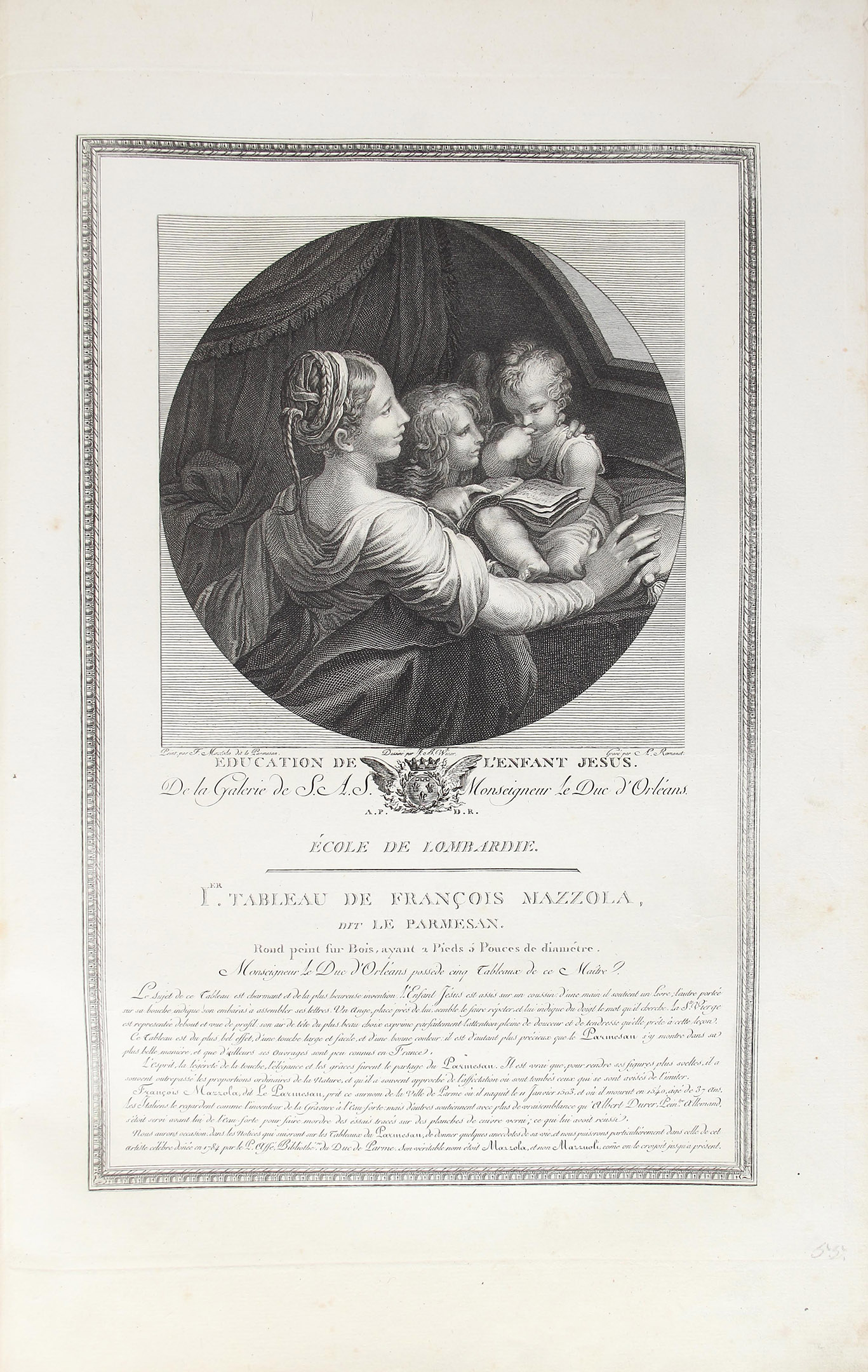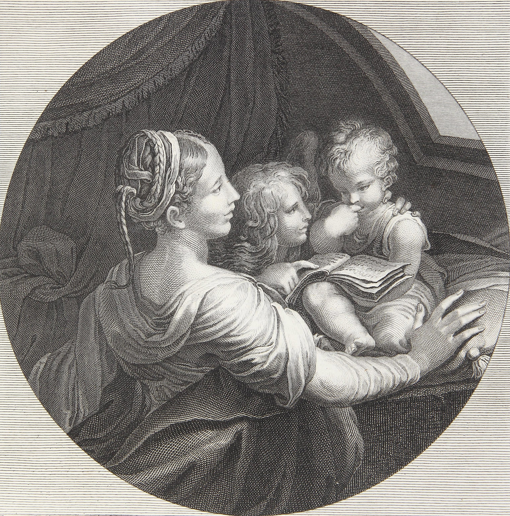 Романэ Антуан Луи. Обучение младенца Иисуса. Франция, г. Париж. Последняя четверть XVIII — начало XIX в. Бумага; офорт, резец