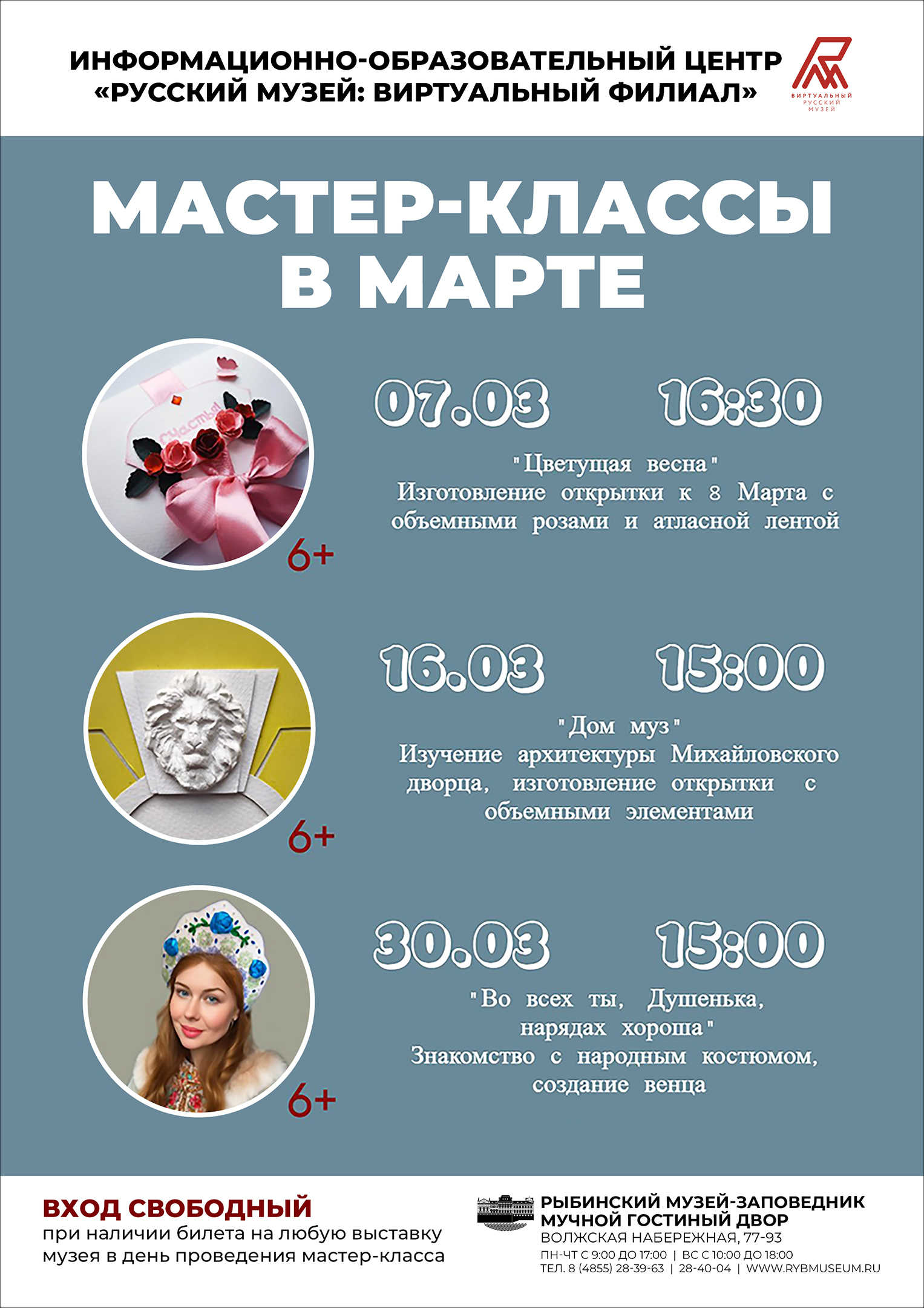 Дорогие рыбинцы и гости города! Виртуальный филиал Русского музея приглашает детей и взрослых на интересные мастер-классы в марте 2025 года.
