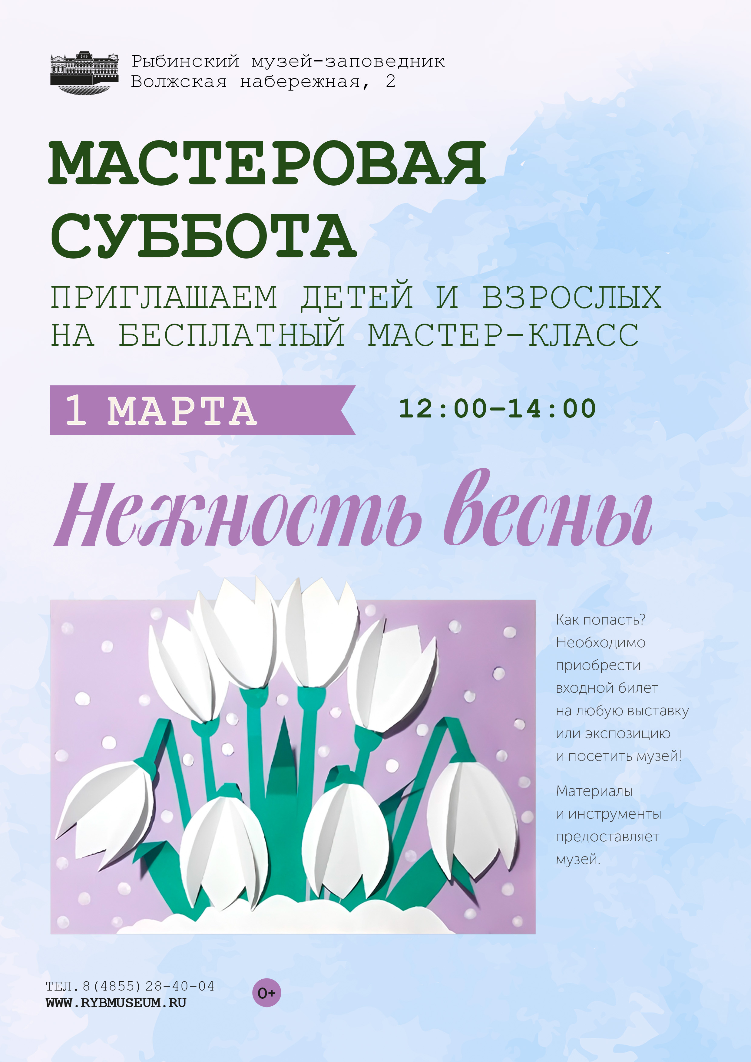 Приглашаем 1 марта с 12:00 до 14:00 детей и родителей на бесплатный мастер-класс «Нежность весны».