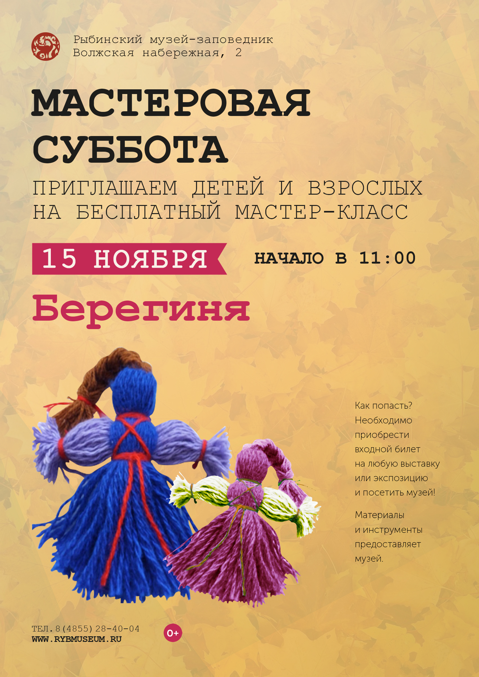 Приглашаем 15 ноября в 11:00 детей и родителей на бесплатный мастер-класс «Берегиня».