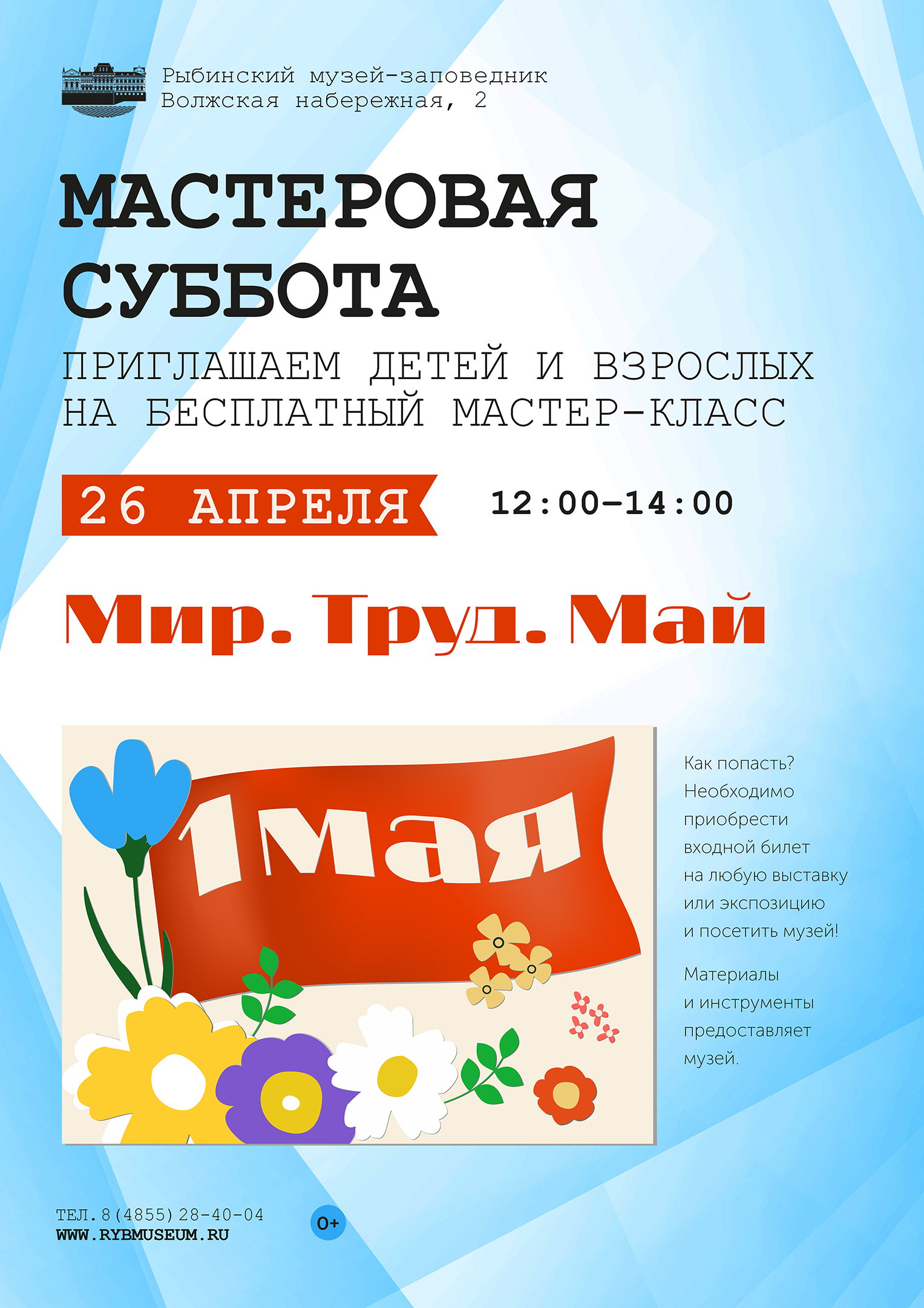 Приглашаем 26 апреля с 12:00 до 14:00 детей и родителей на бесплатный мастер-класс «Мир. Труд. Май».