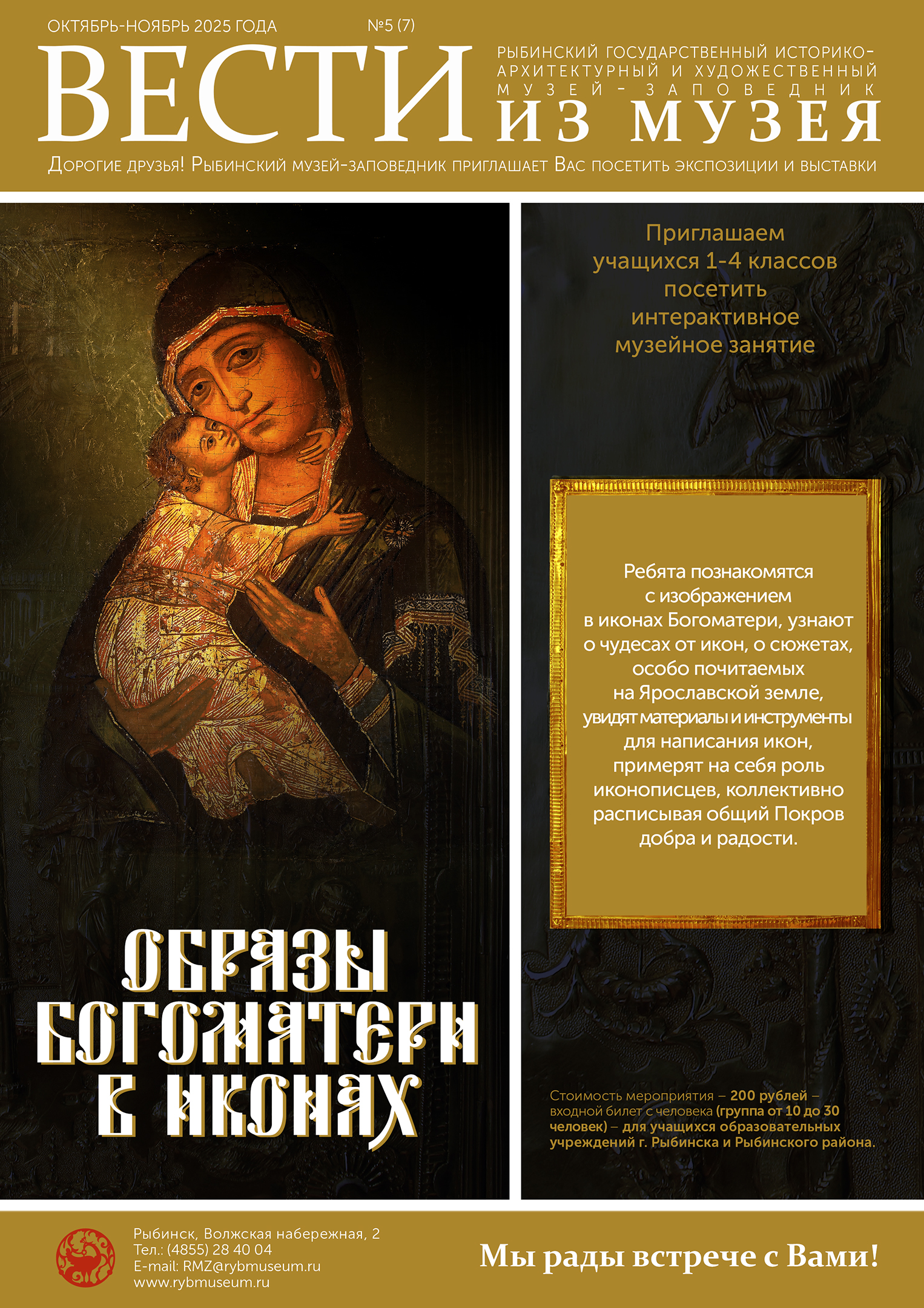 Уважаемые педагоги! В октябре-ноябре Рыбинский музей-заповедник приглашает учащихся 1-4 классов посетить интерактивное музейное занятие «Образы Богоматери в иконах»