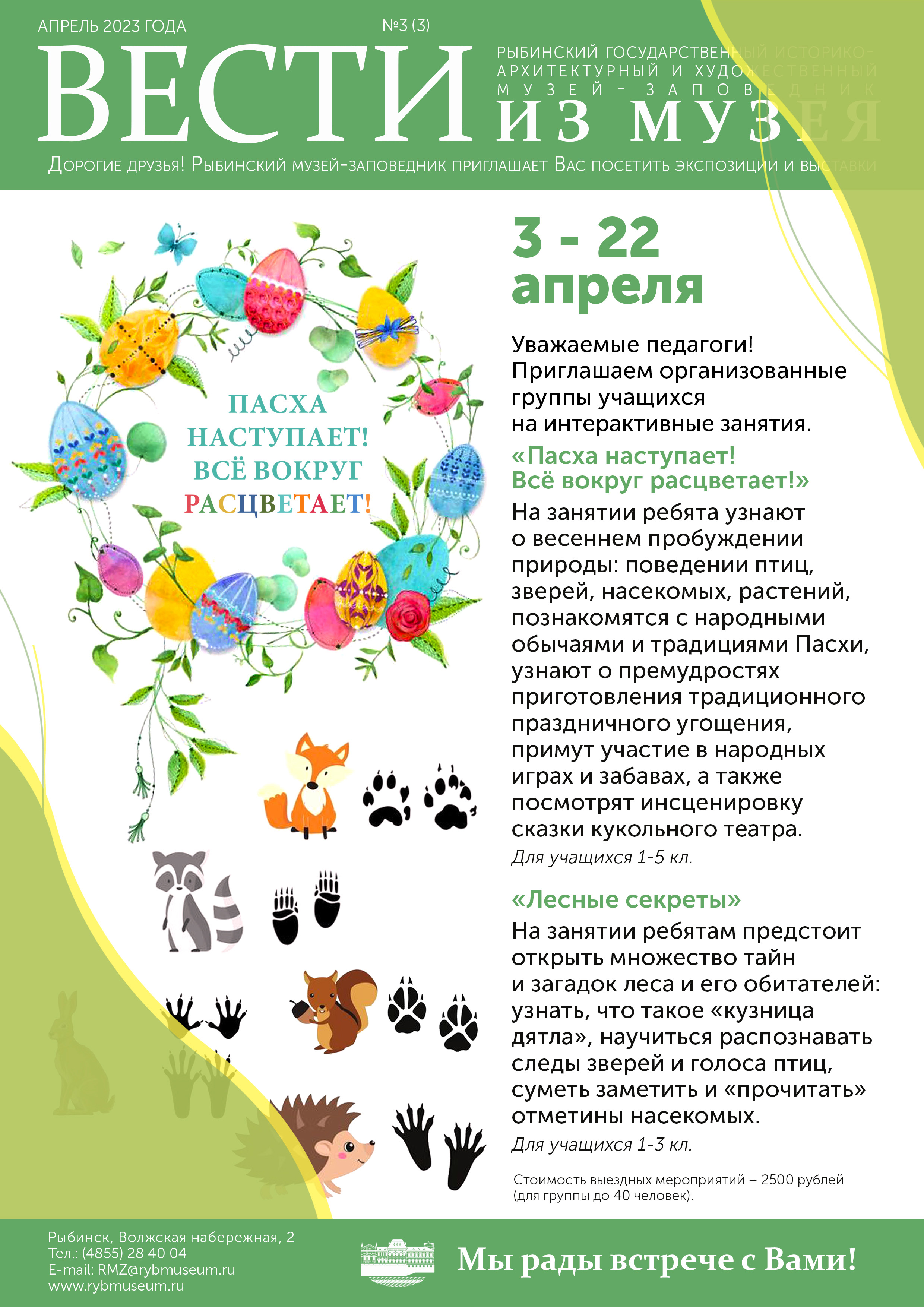 Уважаемые педагоги! В апреле Рыбинский музей-заповедник предлагает для организованных групп учащихся выездные мероприятия: