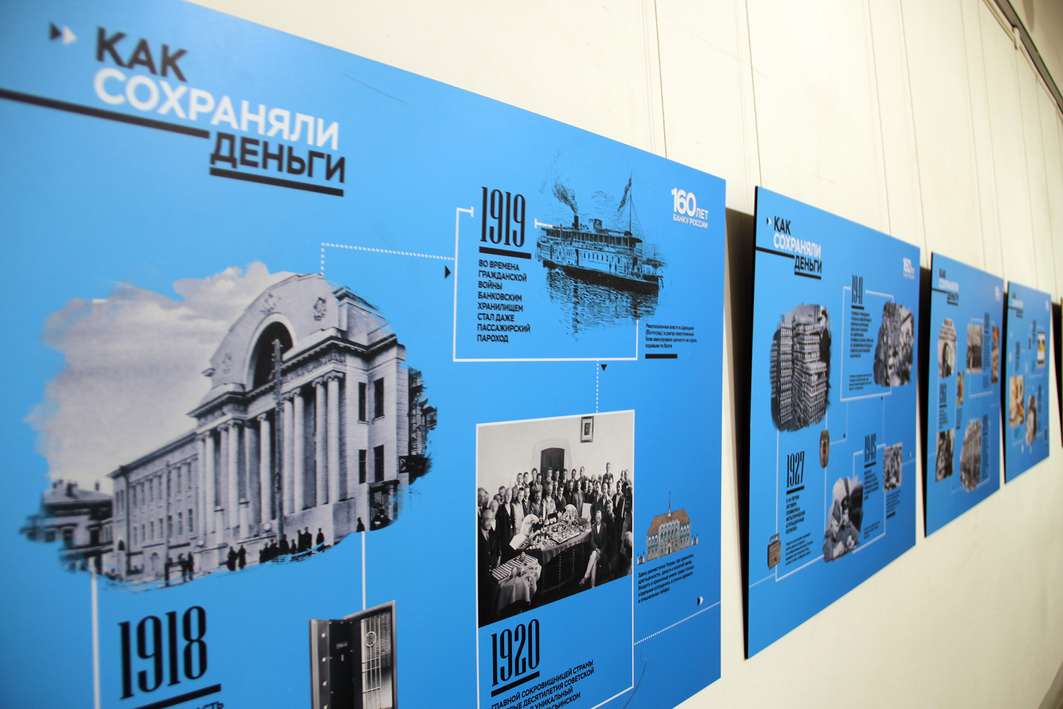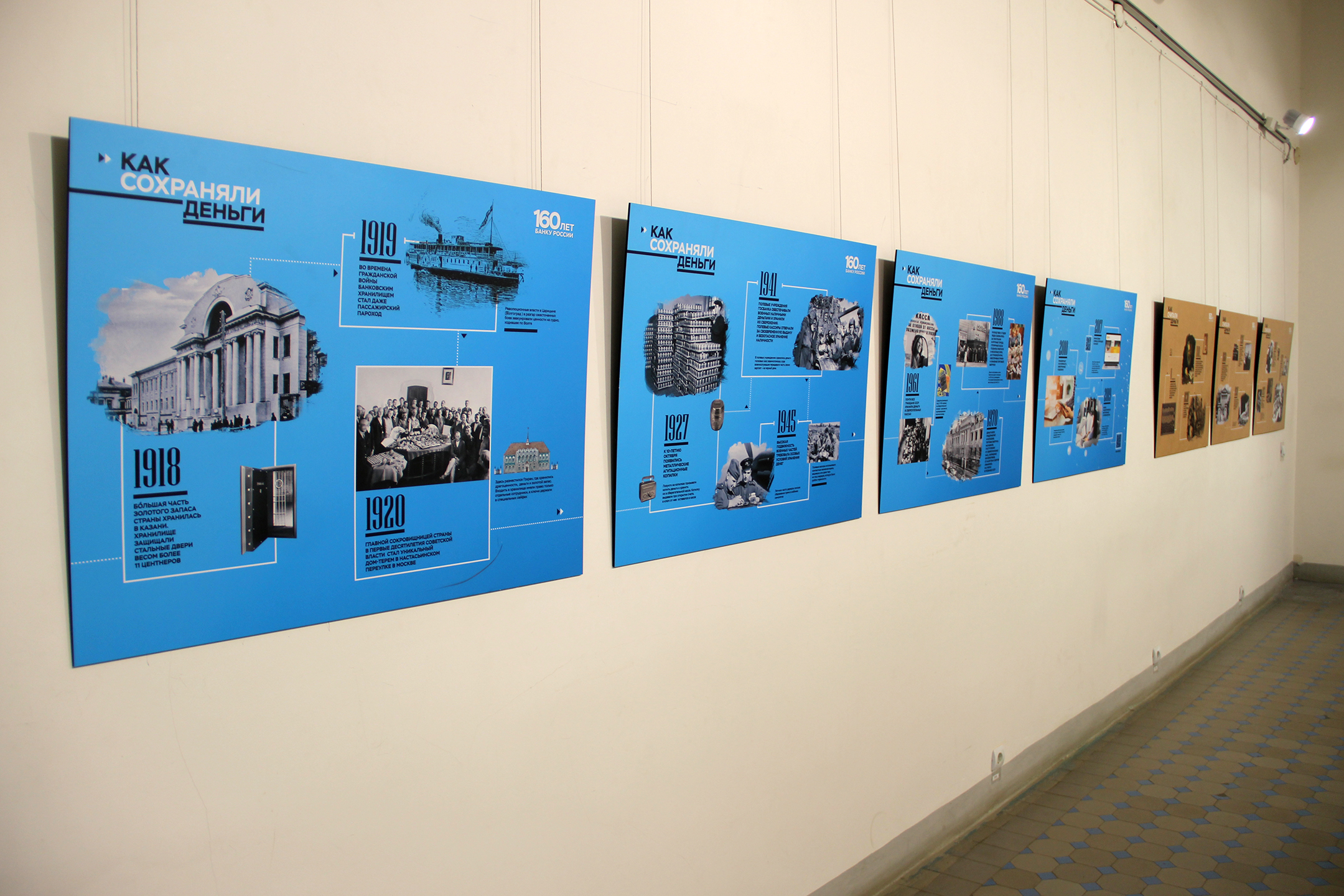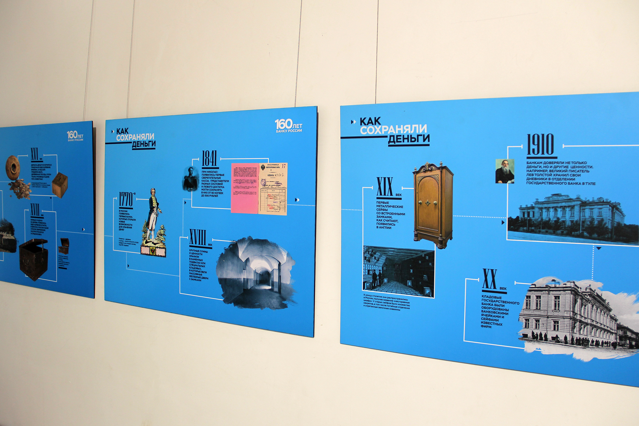 В основе выставки – фотопанно с увеличенными изображениями металлических и бумажных денежных знаков из коллекции Музея Банка России. Перед зрителем предстаёт многообразие денег российского государства, начиная от монет Петра I до современных денег. Изображения банкнот дополнены короткими интересными фактами из истории денежного дела.