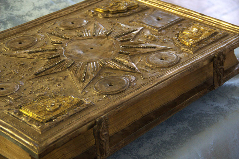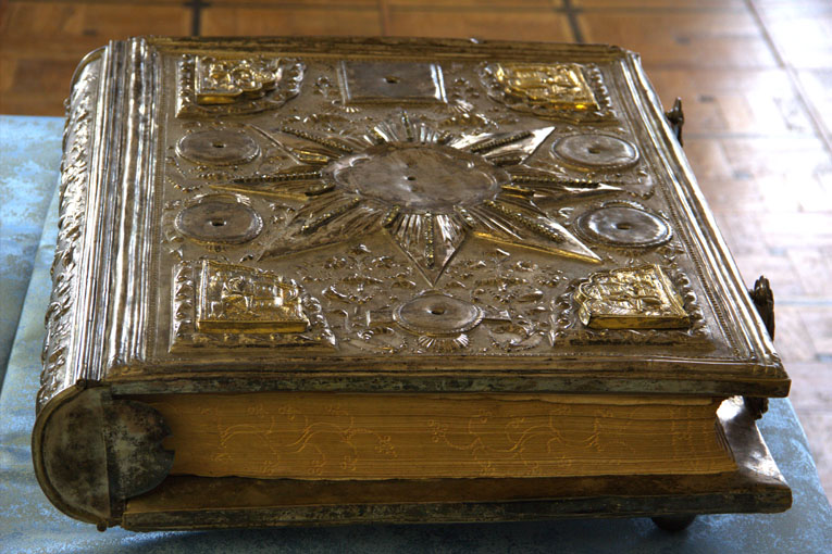 В определенный день и час один из священников, надев белые перчатки, будет торжественно вынимать из витрины церковное Евангелие 1689 года, великих размеров и весом более 20 кг. в драгоценном окладе.