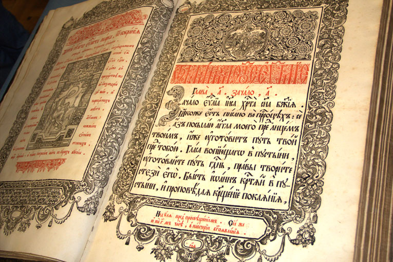 Среди памятников книжности экспонируются и такие раритеты как Евангелие первопечатника Петра Тимофеева Мстиславца 1575 года, и творение Иоанна Златоуста «Маргарит» Острожской типографии 1595 года.