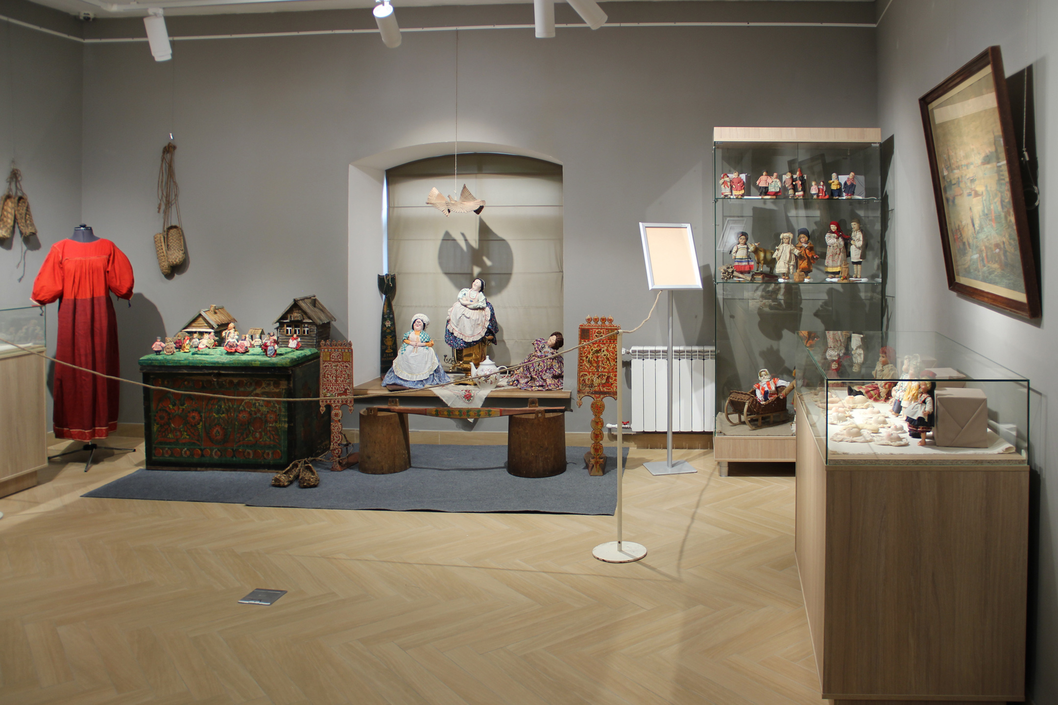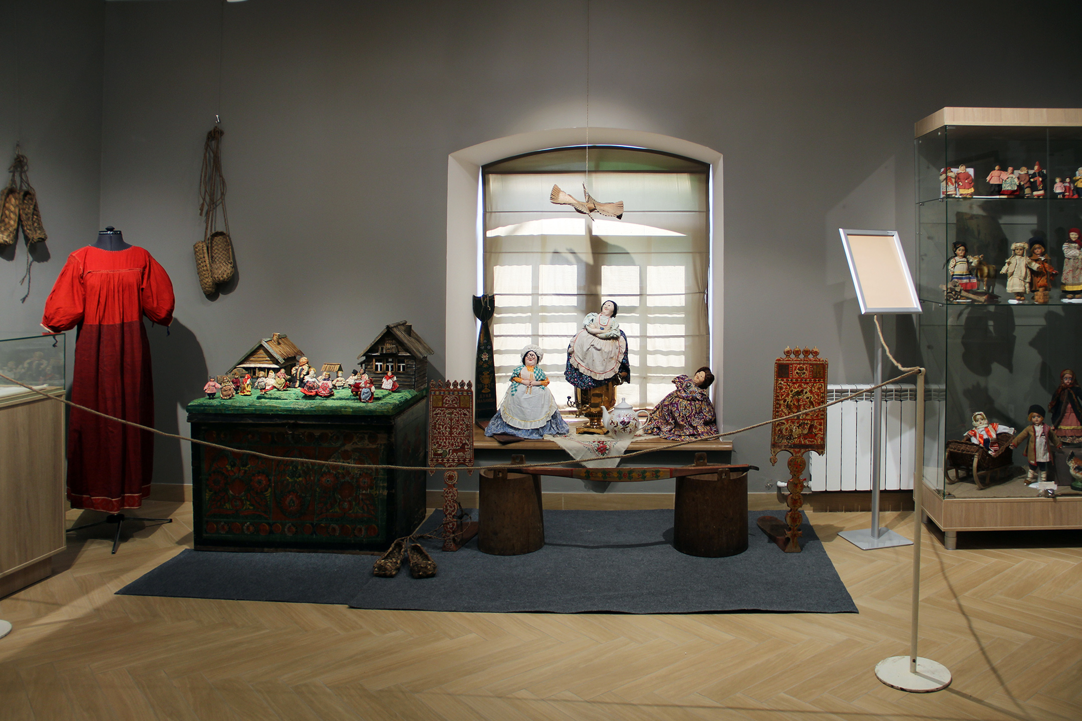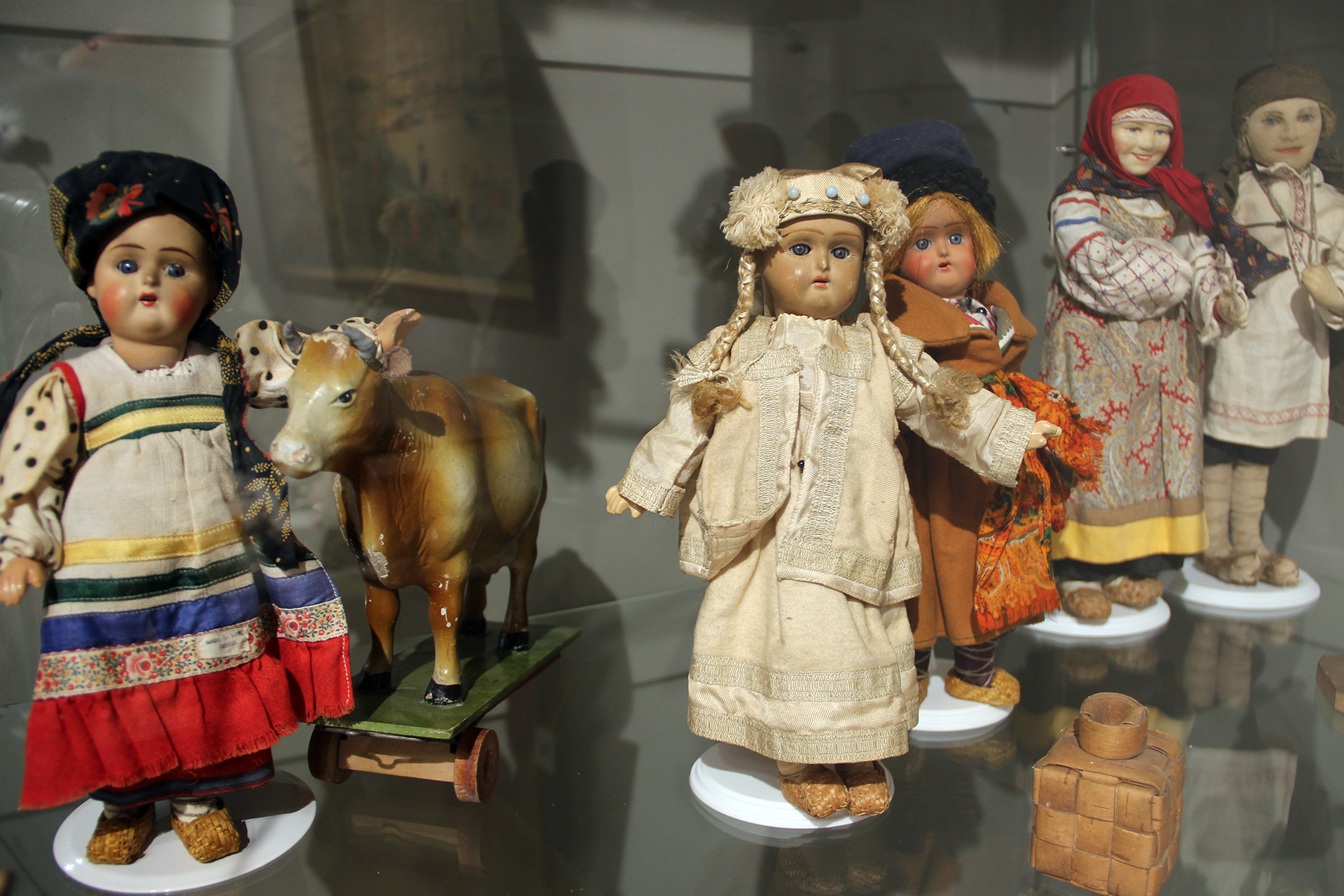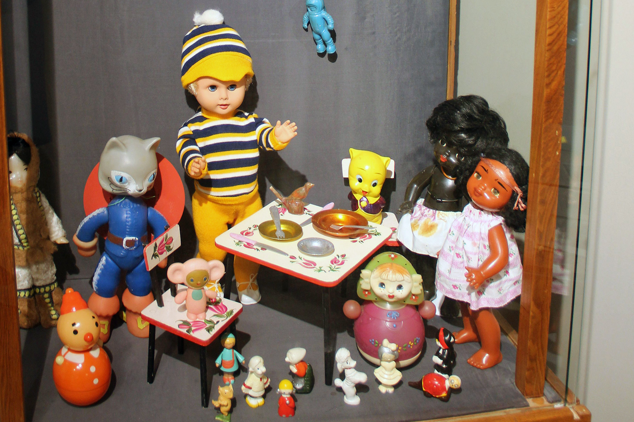 В первом зале выставлена обширная коллекция артельных кукол, созданных в 1920-е годы. В ней представлены куклы в национальных костюмах народов СССР. Справа от входа в интерьере советского времени выставлены куклы 1950-х-1960-х годов из папье-маше, пластмассы, мягкие игрушки.
