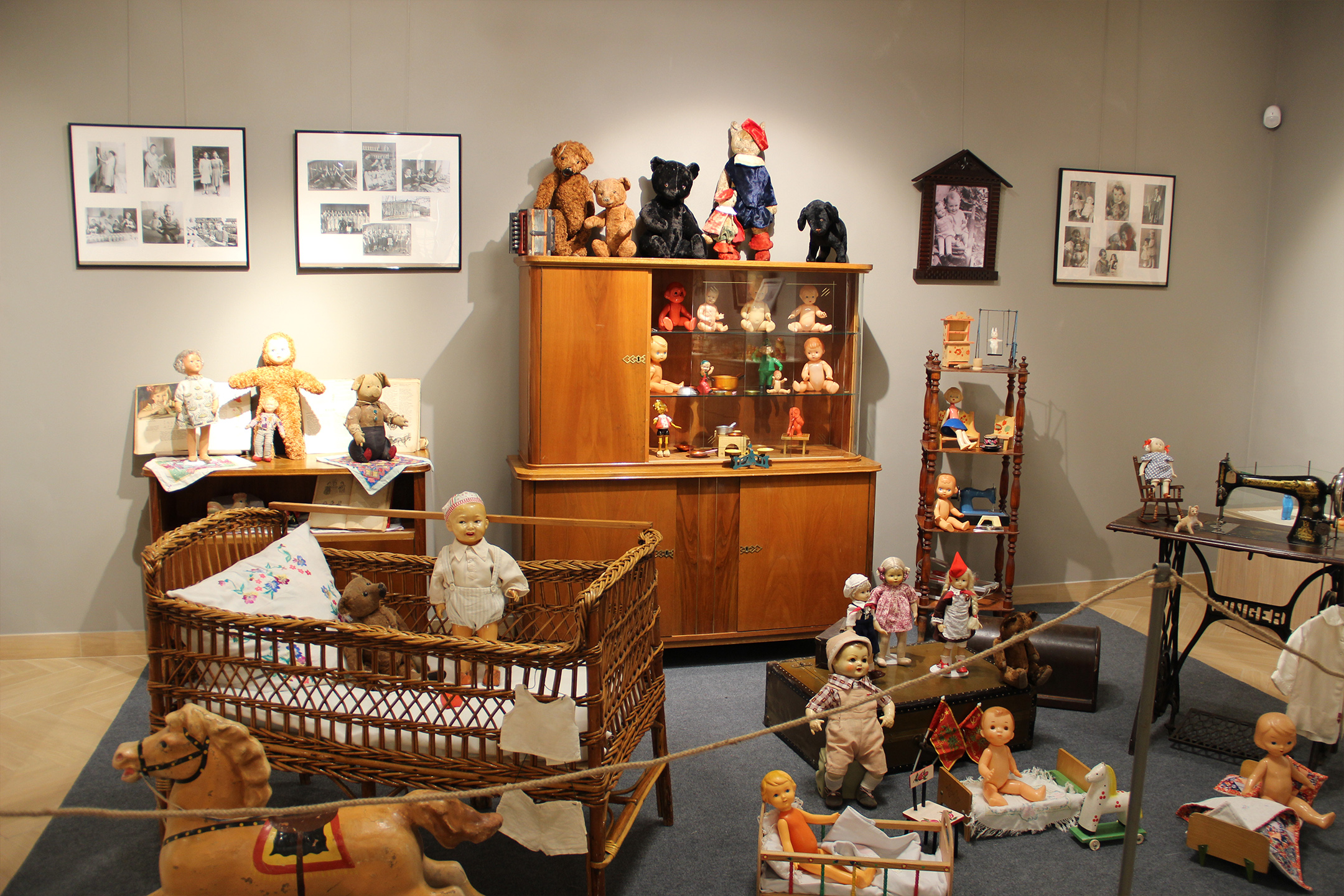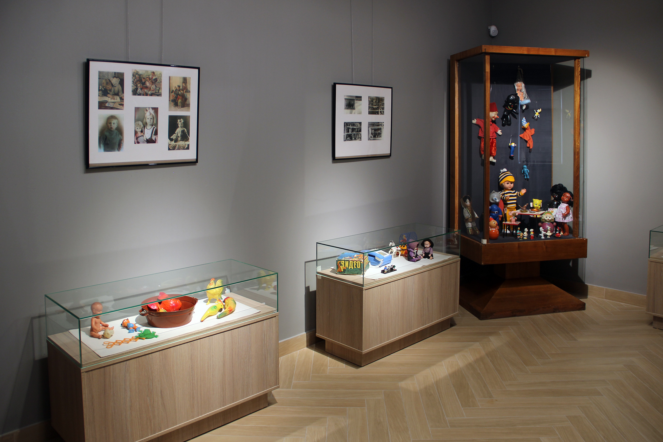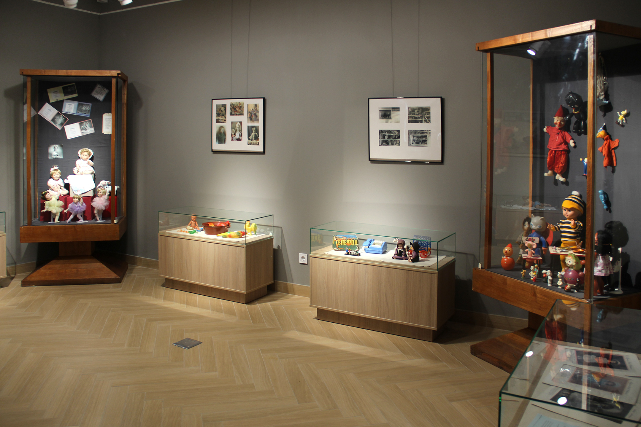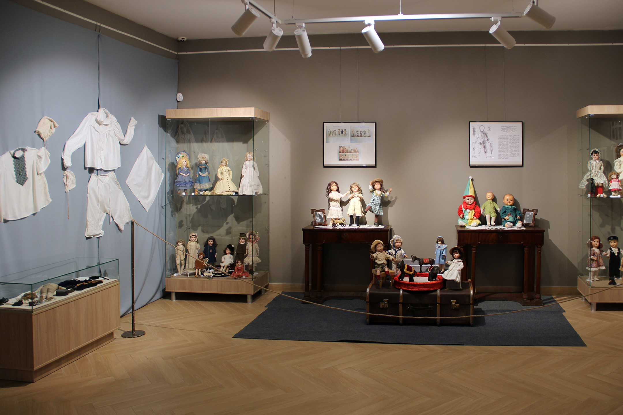 В первом зале выставлена обширная коллекция артельных кукол, созданных в 1920-е годы. В ней представлены куклы в национальных костюмах народов СССР. Справа от входа в интерьере советского времени выставлены куклы 1950-х-1960-х годов из папье-маше, пластмассы, мягкие игрушки.