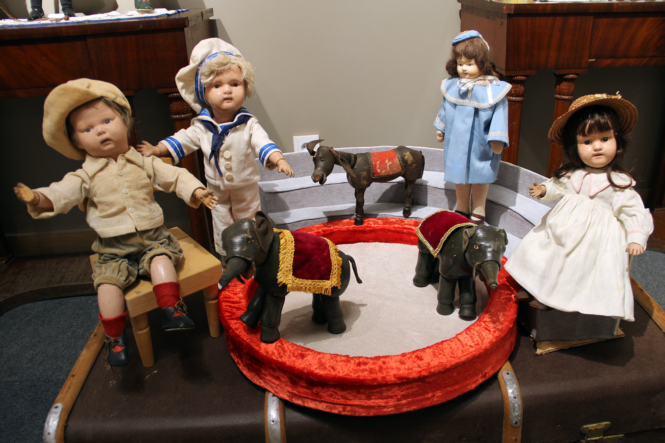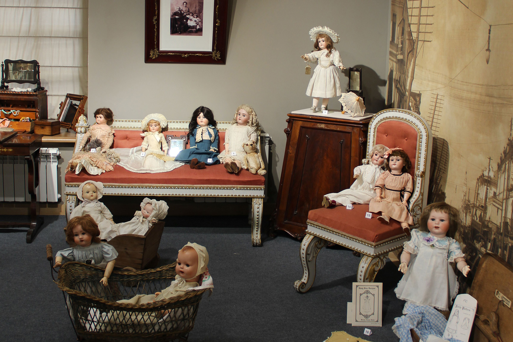Во втором зале – уникальная коллекция антикварных кукол, представляющая все основные европейские производства и продукцию обеих Америк, начиная с 1880-х годов. Среди них куклы прекрасной сохранности с мельчайшими деталями костюма и аксессуаров знаменитых фирм Арманд Марсель, Симон Хальбиг (Simon Halbig) DEP, ABJ – ALT BECK& GOTTSCHALCK Англия, и др. Куклы из бисквитного и глазурованного фарфора, папье-маше, дерева, композитных материалов.
