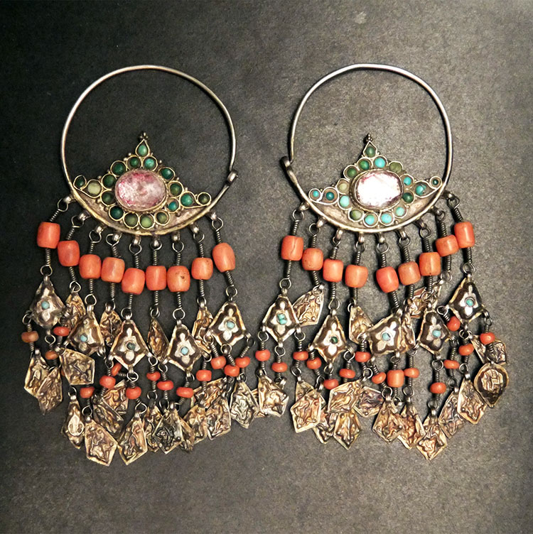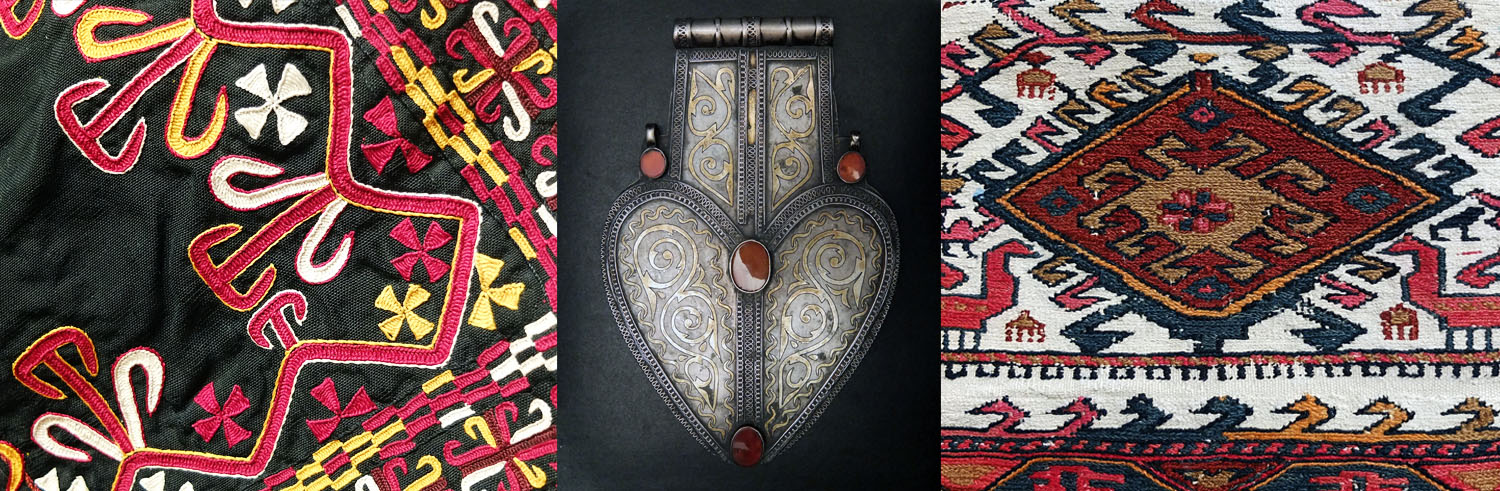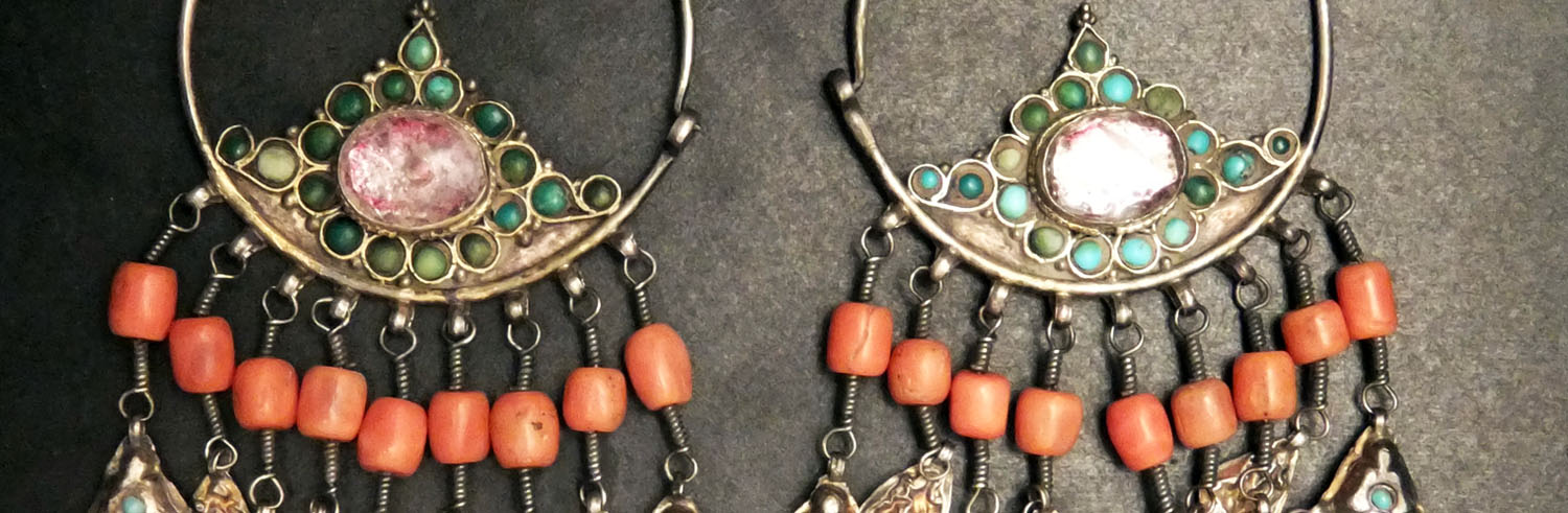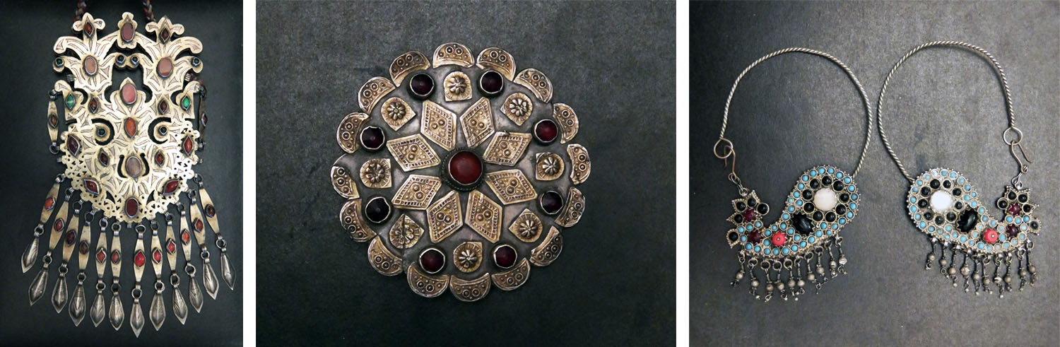 в Представительском зале музея работает уникальная для нашего города выставка, связанная с темой Востока – «По шелковому пути».На выставке более трехсот изделий XIX–XX века стран Азии, Кавказа, Ближнего Востока: женские ювелирные украшения – серьги, диадемы, височные подвески, затылочные и носовые украшения, браслеты, кольца, традиционные головные уборы мусульманских народов, свадебные наголовные халаты, сюзане, платки, ковры. Более того, здесь мы можем увидеть стеклянные бусины, датируемые I в. до н. э., найденные на территории Ирана, монгольские курительницы, туркменские детские амулеты, мужские наспинные украшения… Но прежде всего, красочное, экзотическое многообразие открывает завесу таинственного женского бытия мусульманского мира, а также Индии, Китая и даже далекой Монголии.