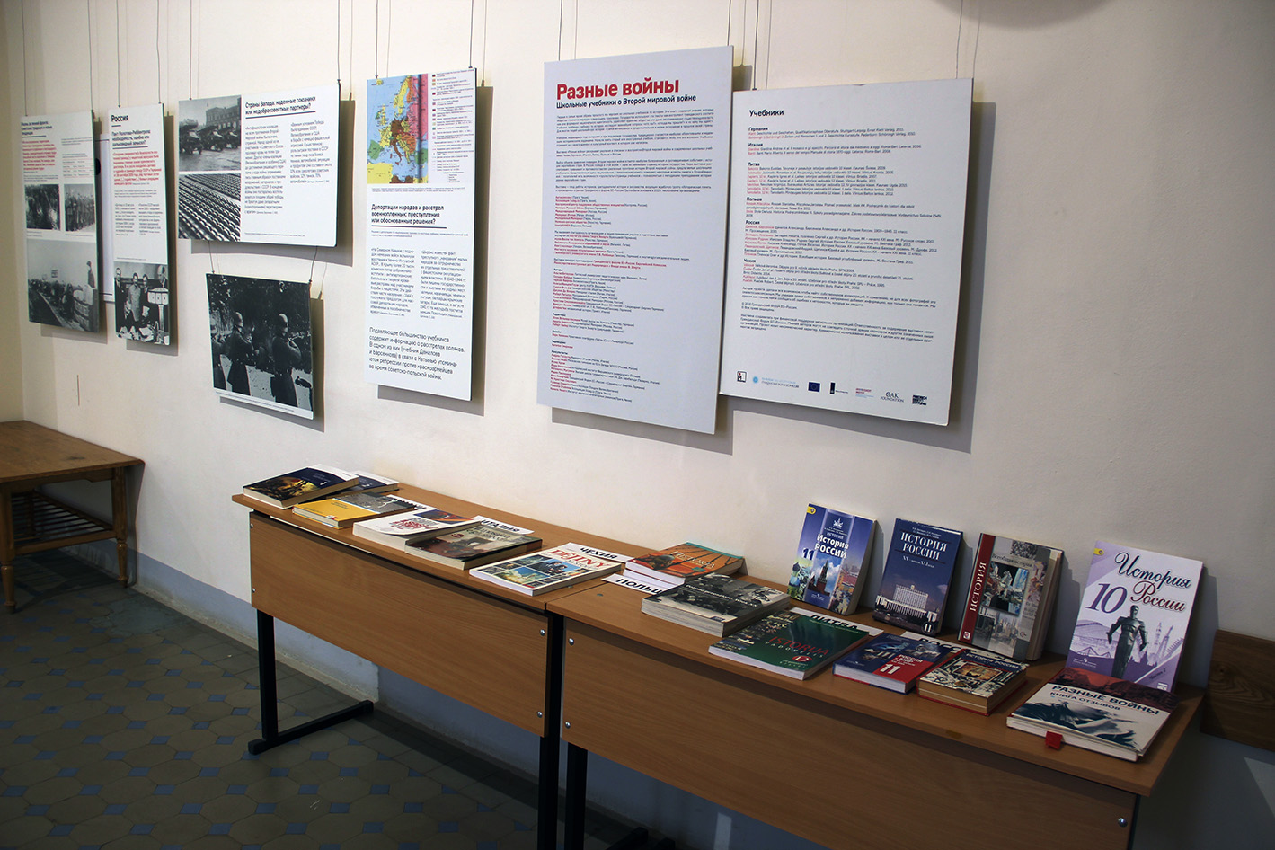 Выставка «Разные войны» исследует различные подходы к восприятию и отражению истории Второй мировой войны через сравнение современных учебников для старшеклассников Германии, Италии, Литвы, Польши, России и Чехии.