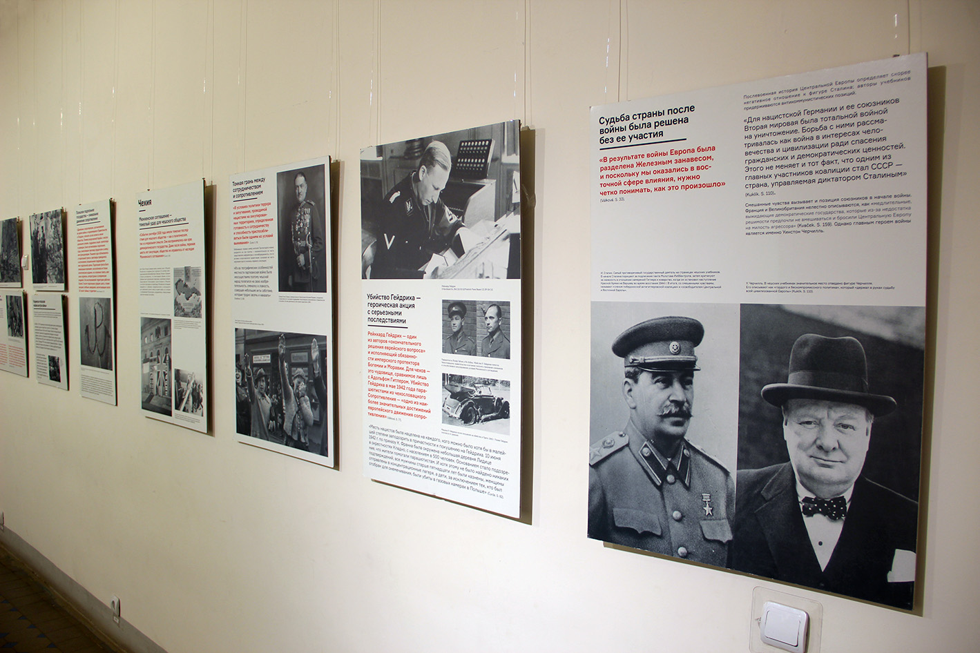 Выбор объекта сравнения не случаен, ведь Вторая мировая война остаётся наиболее болезненным и противоречивым событием в истории европейских стран. В России же победа в этой войне – одна из важнейших страниц истории государства. В экспозиции рассматриваются, сравниваются и противопоставляются различные прочтения истории войны, предлагаемые школьными учебниками. Представленные здесь национальные и тематические сюжеты освещают, в том числе, и малоизвестные аспекты памяти о Второй мировой. У посетителей есть возможность самим пролистать страницы учебников и познакомиться с методиками преподавания истории в разных европейских странах.
