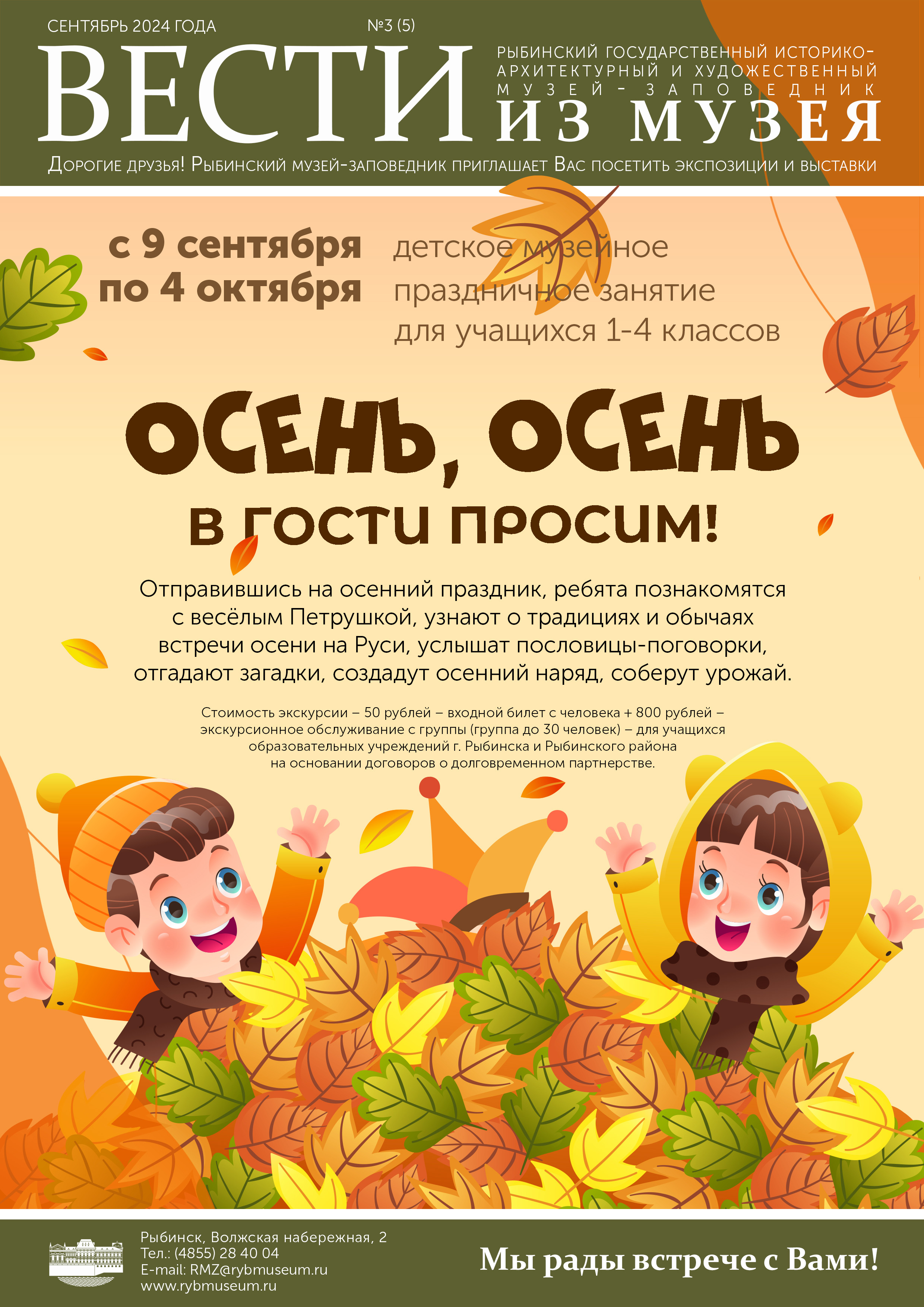 Уважаемые педагоги! С 9 сентября по 4 октября Рыбинский музей-заповедник приглашает учащихся 1-4 классов на детское музейное праздничное занятие «Осень, осень, в гости просим!».